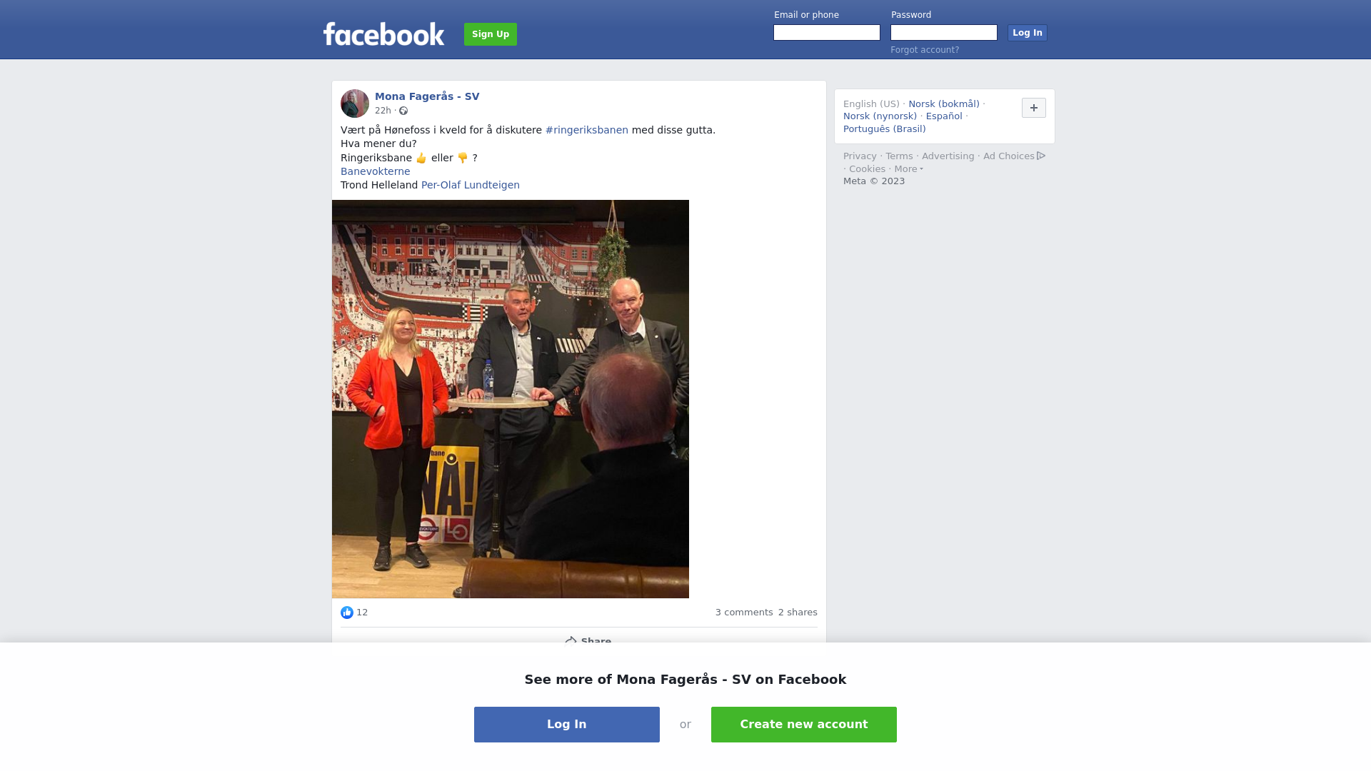 Vært på Hønefoss i kveld for å diskutere #ringeriksbanen med disse gutta. \nHva mener du?\nRingeriksbane 👍 eller 👎 ?\nBanevokterne \nTrond Helleland Per-Olaf Lundteigen