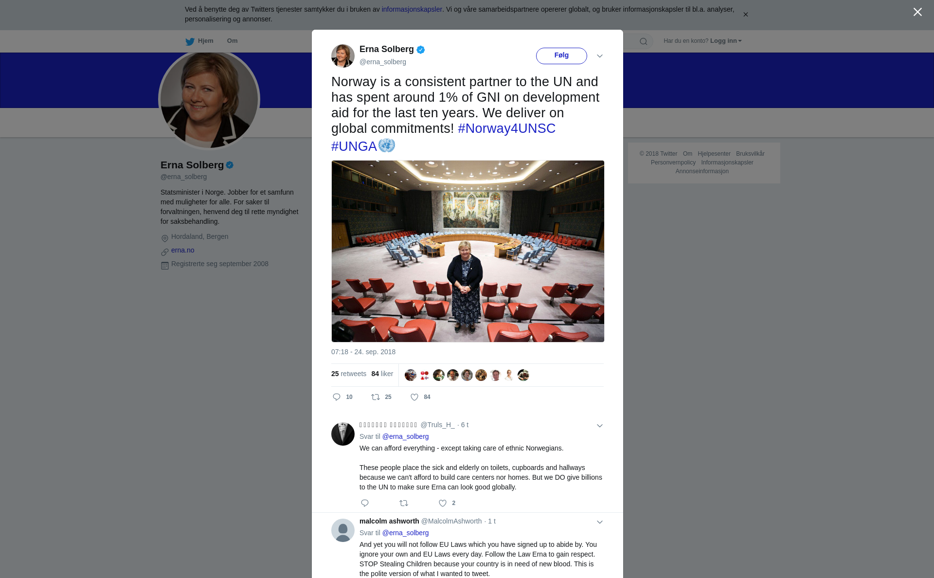 RT @erna_solberg: Norway is a consistent partner to the UN and has spent around 1% of GNI on development aid for the last ten years. We deliver on global commitments! #Norway4UNSC #UNGA https://t.co/qob5PoKxvY