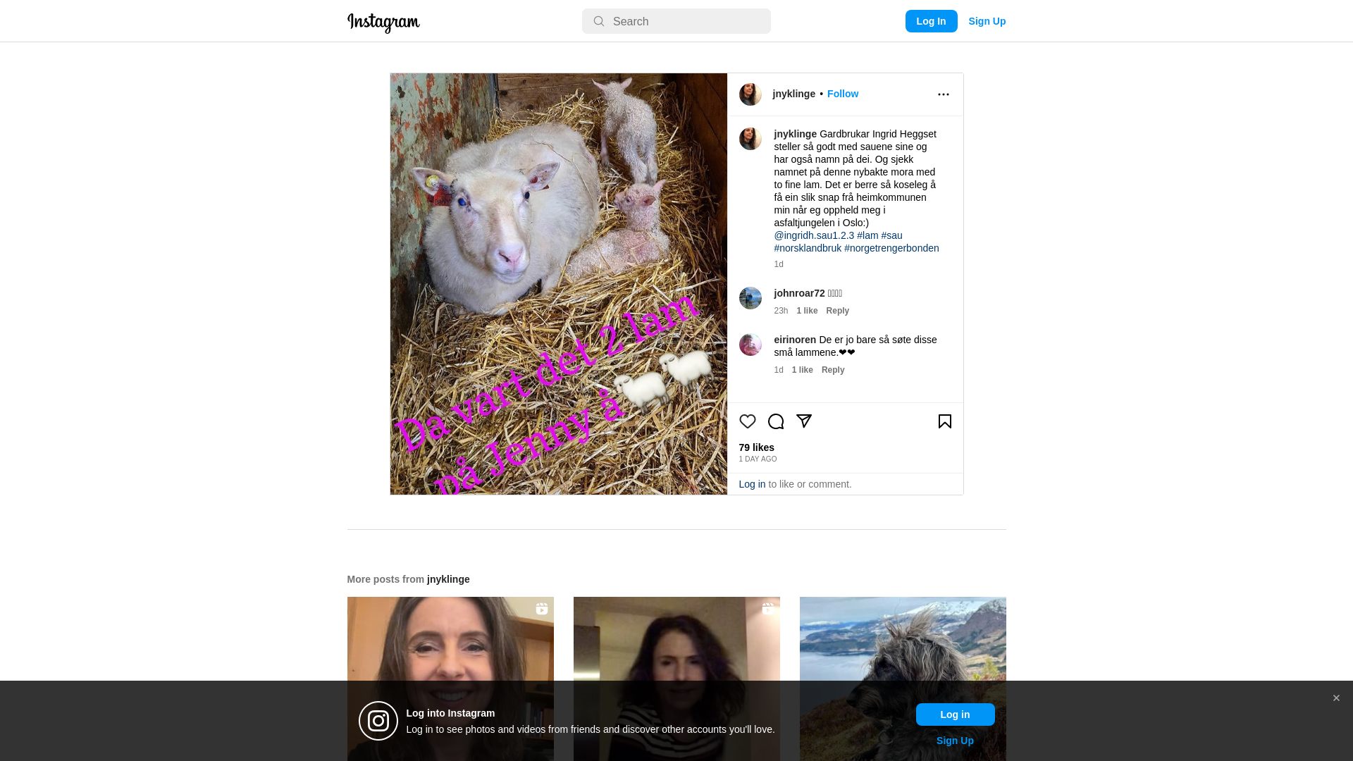 Gardbrukar Ingrid Heggset steller så godt med sauene sine og har også namn på dei. Og sjekk namnet på denne nybakte mora med to fine lam. Det er berre så koseleg å få ein slik snap frå heimkommunen min når eg oppheld meg i asfaltjungelen i Oslo:) @ingridh.sau1.2.3 #lam #sau #norsklandbruk #norgetrengerbonden