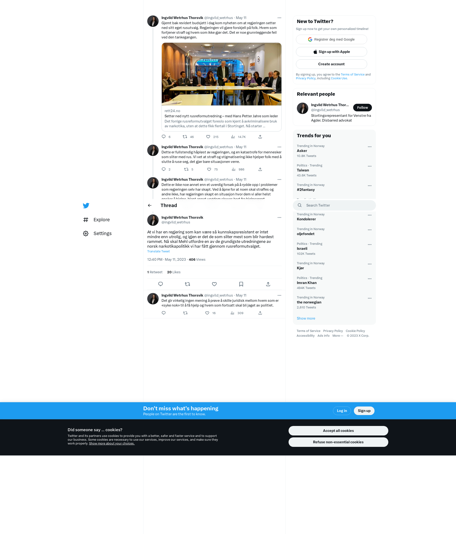 At vi har en regjering som kan være så kunnskapsresistent er intet mindre enn utrolig, og igjen er det de som sliter mest som blir hardest rammet. Nå skal Mehl utfordre en av de grundigste utredningene av norsk narkotikapolitikk vi har fått gjennom rusreformutvalget.