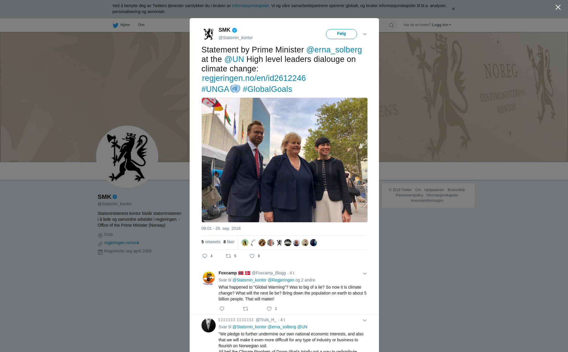 Statement by Prime Minister @erna_solberg at the @UN High level leaders dialouge on climate change:
