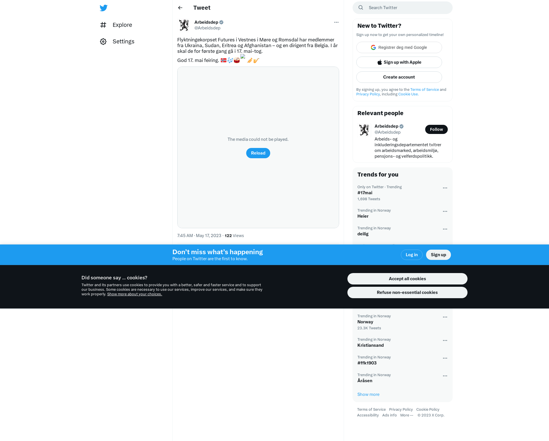 Flyktningekorpset Futures i Vestnes i Møre og Romsdal har medlemmer fra Ukraina, Sudan, Eritrea og Afghanistan – og en dirigent fra Belgia. I år skal de for første gang gå i 17. mai-tog.  \nGod 17. mai feiring. 🇳🇴🎶🥁🪈🎺🎷 https://t.co/1qDAlIUUdS