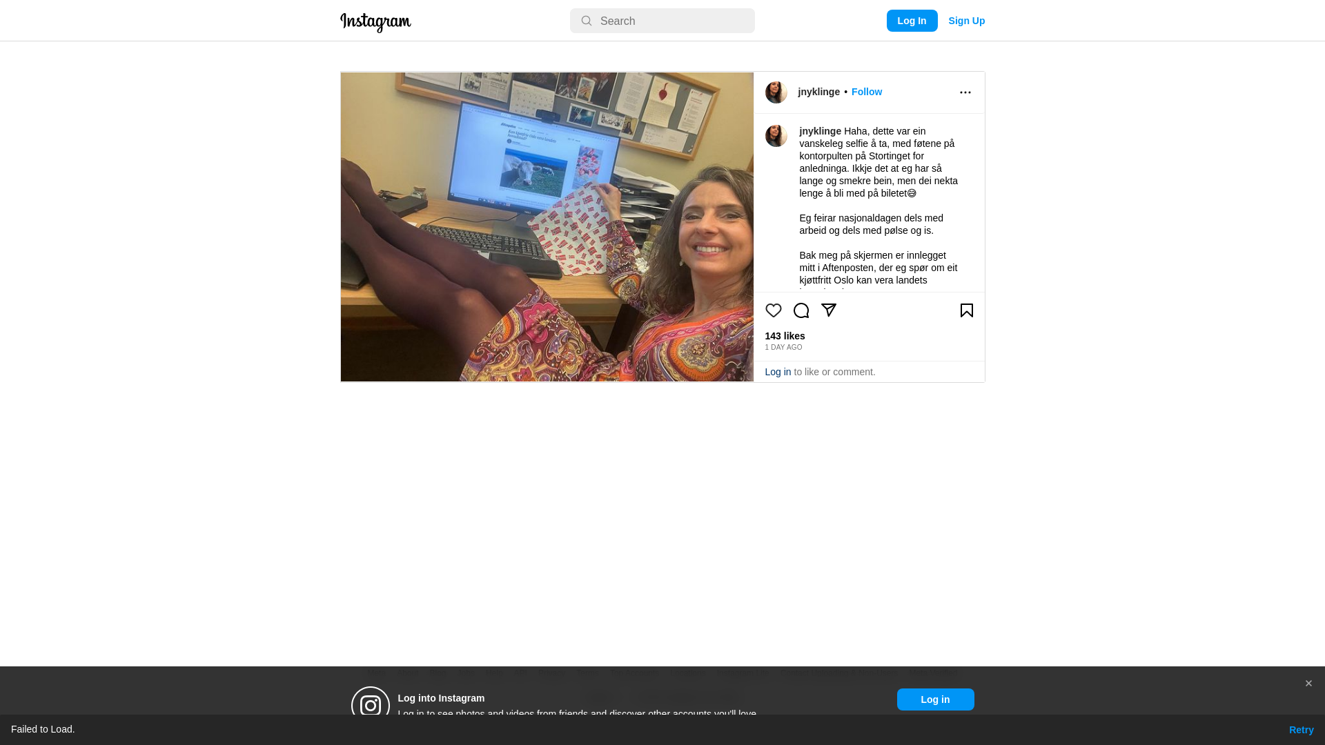 Haha, dette var ein vanskeleg selfie å ta, med føtene på kontorpulten på Stortinget for anledninga. Ikkje det at eg har så lange og smekre bein, men dei nekta lenge å bli med på biletet😅\n \nEg feirar nasjonaldagen dels med arbeid og dels med pølse og is.\n \nBak meg på skjermen er innlegget mitt i Aftenposten, der eg spør om eit kjøttfritt Oslo kan vera landets hovudstad. \n \nHeldigvis var det ekte pølse å få i hovudstaden i dag, men ein kan lure på kor lenge det vil vare. Byrådet i Oslo er jo i ferd med å utvikle ein mental allergi mot kjøtt. \n\nEg heiar på eit variert kosthald og matproduksjon på norske ressursar i heile dette vakre landet vårt.\n \nFlagging mi i dag skjer ved hjelp av servietten med små flagg i raudt, kvitt og blått.\n\nGratulerer med nasjonaldagen alle mann! 🇳🇴❤️🇳🇴\n\n#nasjonaldag #norskmatproduksjon #gratulerermeddagennorge🇳🇴