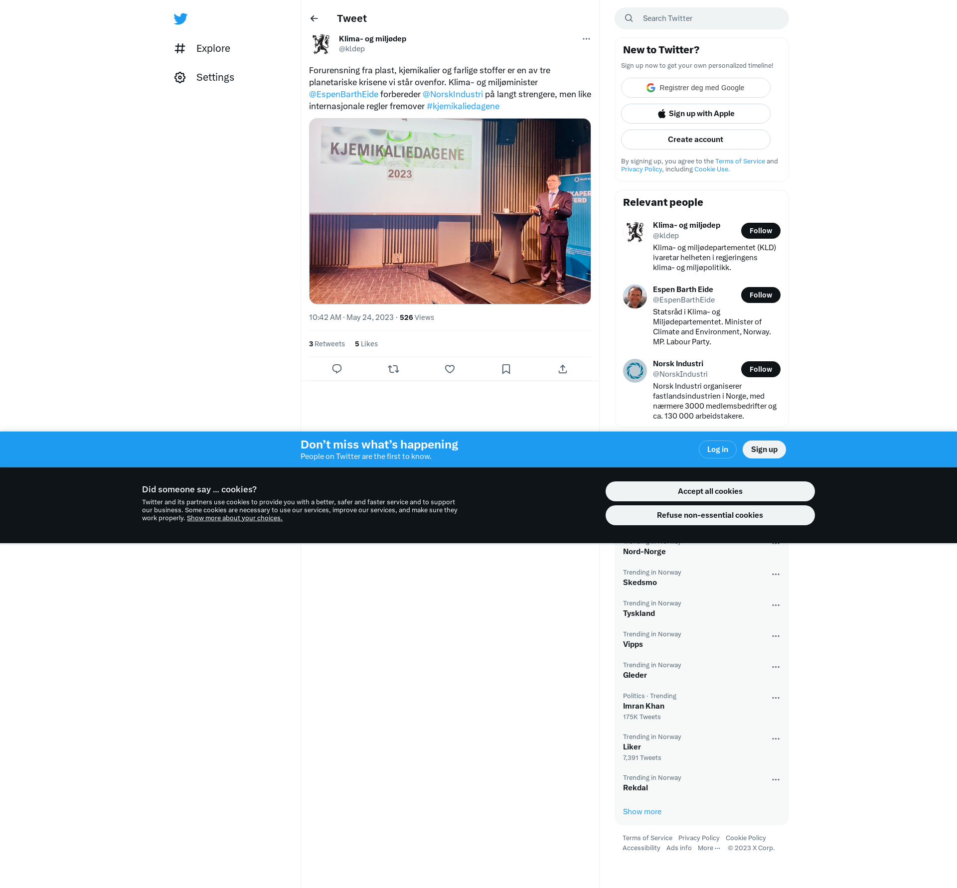 Forurensning fra plast, kjemikalier og farlige stoffer er en av tre planetariske krisene vi står ovenfor. Klima- og miljøminister @EspenBarthEide forbereder @NorskIndustri på langt strengere, men like internasjonale regler fremover #kjemikaliedagene https://t.co/CUMQ6NmluR