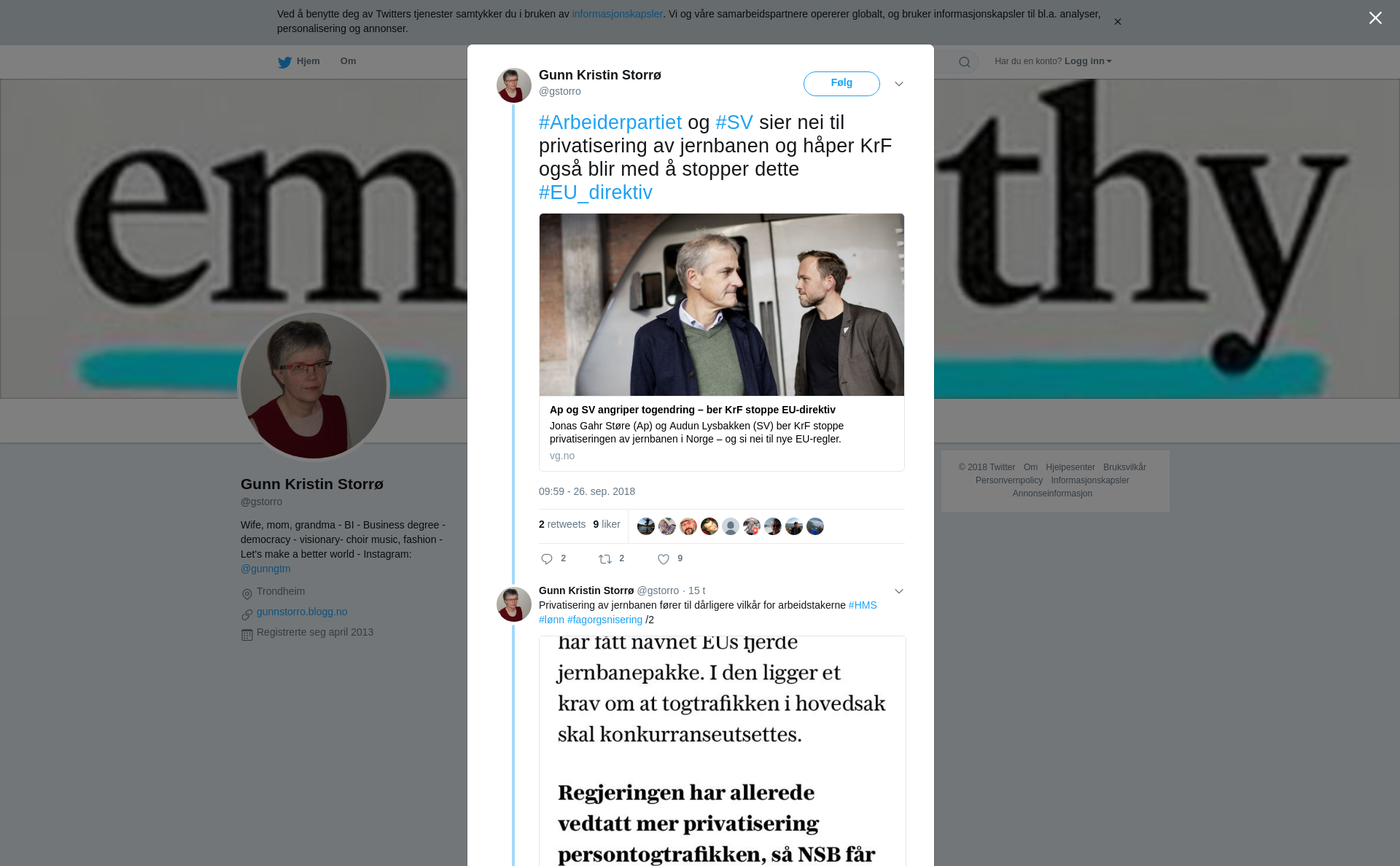 RT @gstorro: #Arbeiderpartiet og #SV sier nei til privatisering av jernbanen og håper KrF også blir med å stopper dette #EU_direktiv https://t.co/ufCTxf6Px1