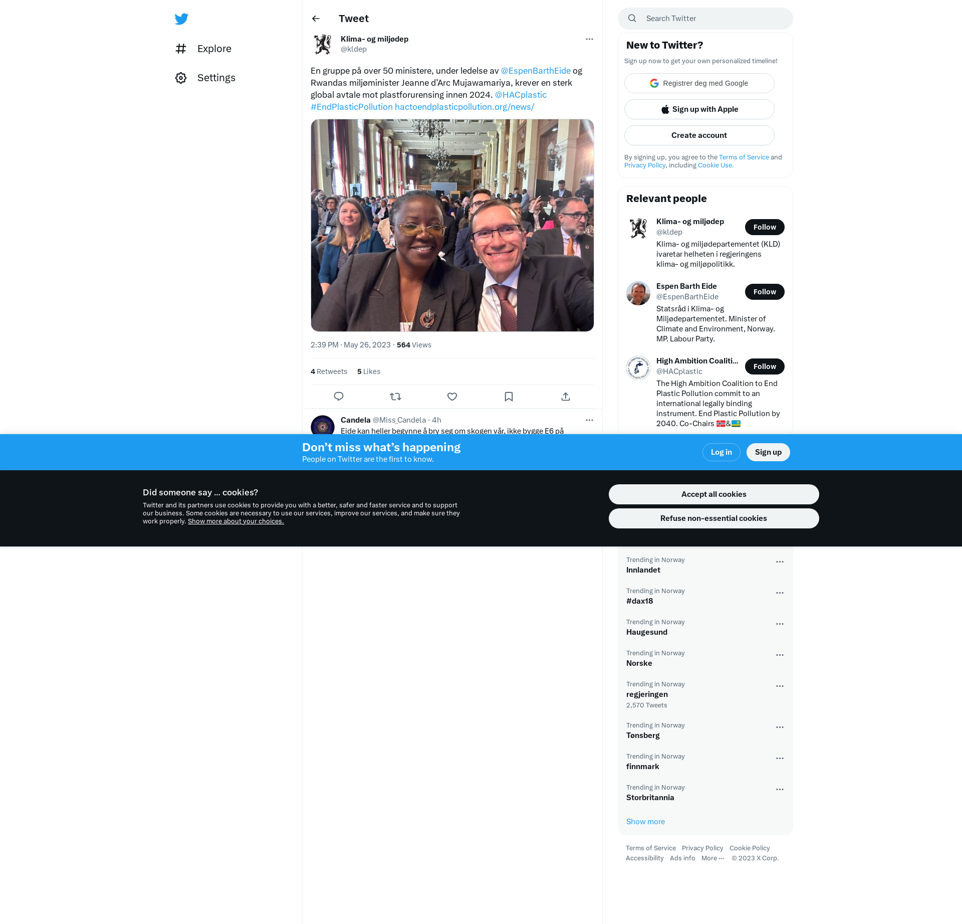 En gruppe på over 50 ministere, under ledelse av @EspenBarthEide og Rwandas miljøminister Jeanne d’Arc Mujawamariya, krever en sterk global avtale mot plastforurensing innen 2024. @HACplastic #EndPlasticPollution https://t.co/HsZZckouw5 https://t.co/4ii9bPQLFy