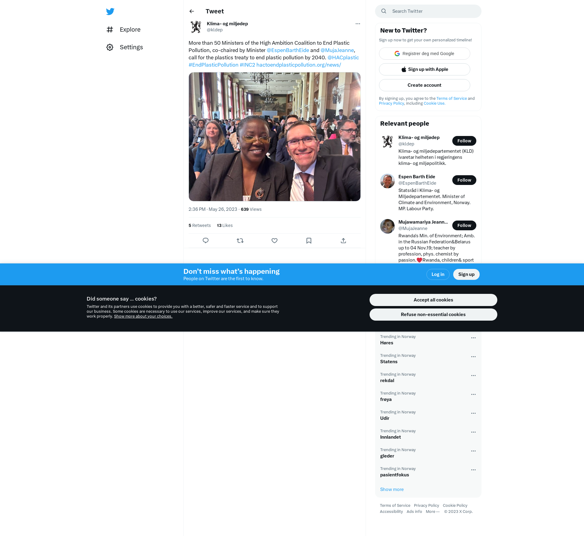 More than 50 Ministers of the High Ambition Coalition to End Plastic Pollution, co-chaired by Minister @EspenBarthEide and @MujaJeanne, call for the plastics treaty to end plastic pollution by 2040. @HACplastic #EndPlasticPollution #INC2 https://t.co/HsZZckouw5 https://t.co/G8mZONvI3x