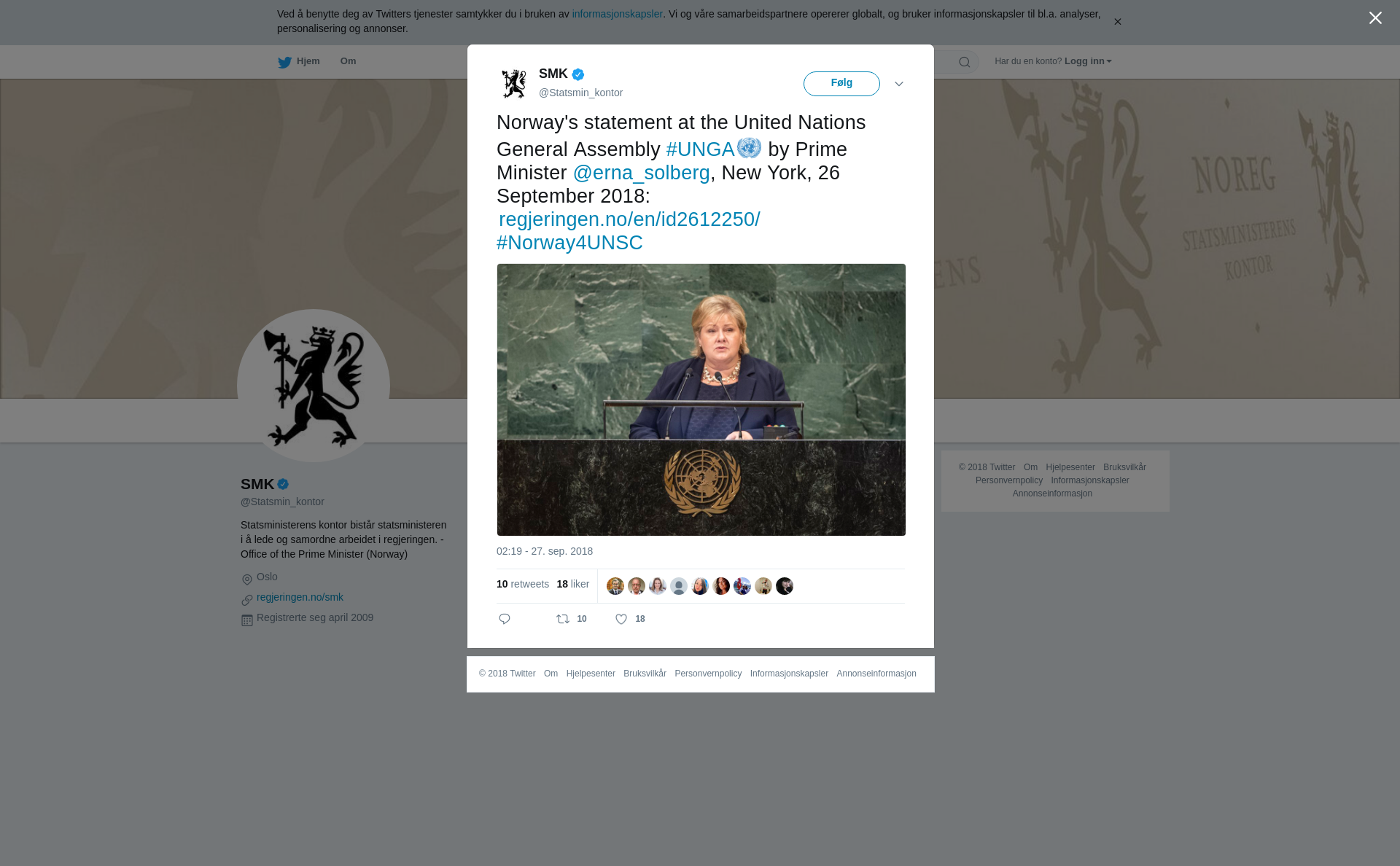 Norway's statement at the United Nations General Assembly #UNGA by Prime Minister @erna_solberg, New York, 26 September 2018: https://t.co/OzIv0S3RkC #Norway4UNSC https://t.co/iwYY08ZZUB