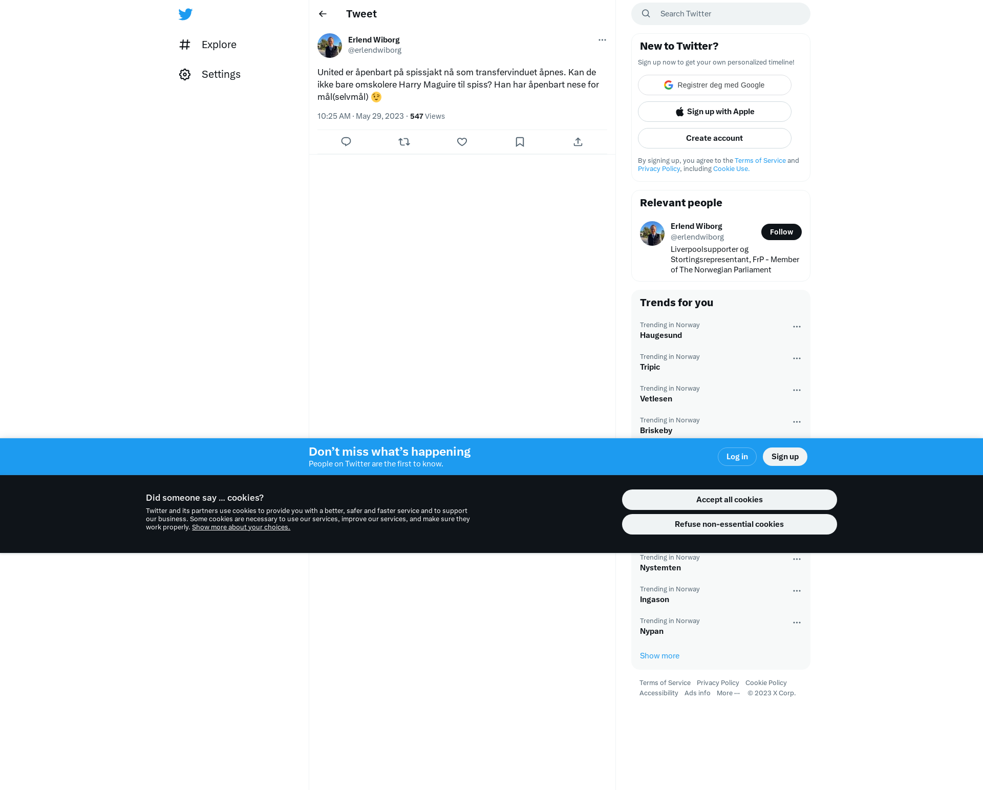 United er åpenbart på spissjakt nå som transfervinduet åpnes. Kan de ikke bare omskolere Harry Maguire til spiss? Han har åpenbart nese for mål(selvmål) 😉