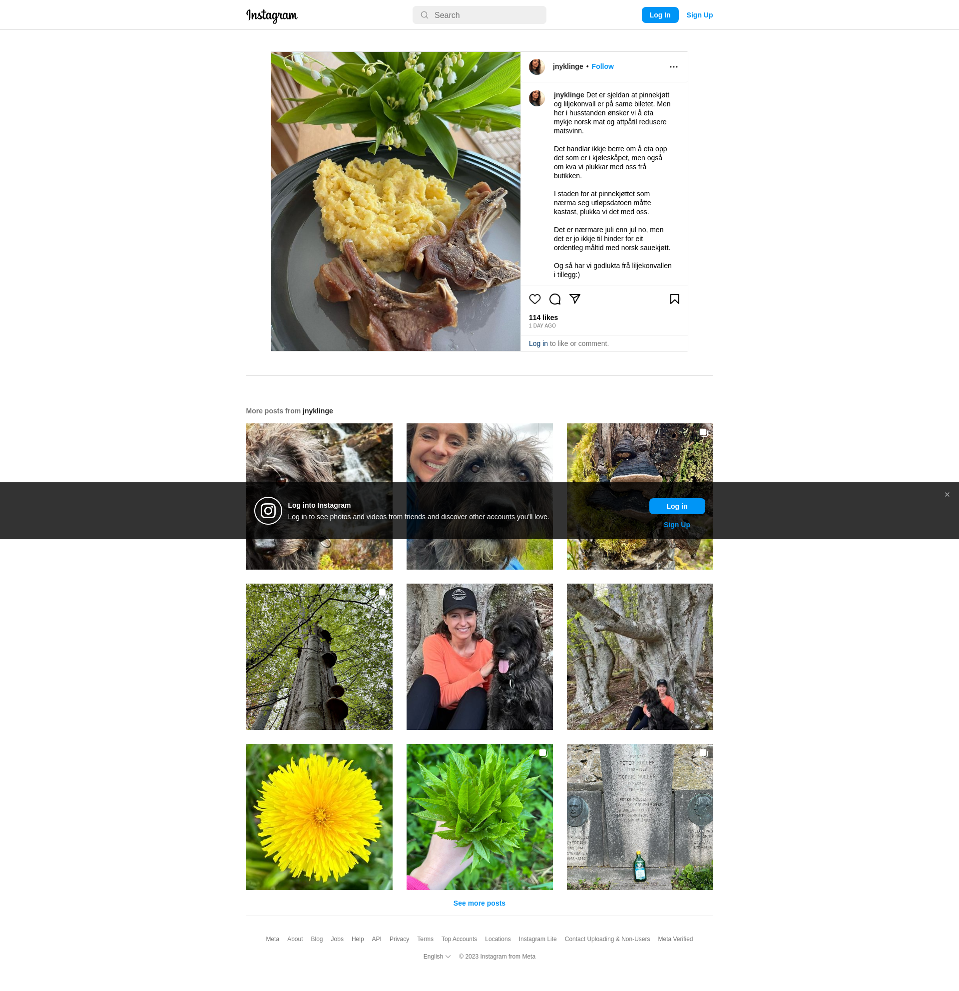 Det er sjeldan at pinnekjøtt og liljekonvall er på same biletet. Men her i husstanden ønsker vi å eta mykje norsk mat og attpåtil redusere matsvinn. \n\nDet handlar ikkje berre om å eta opp det som er i kjøleskåpet, men også om kva vi plukkar med oss frå butikken. \n\nI staden for at pinnekjøttet som nærma seg utløpsdatoen måtte kastast, plukka vi det med oss. \n\nDet er nærmare juli enn jul no, men det er jo ikkje til hinder for eit ordentleg måltid med norsk sauekjøtt. \n\nOg så har vi godlukta frå liljekonvallen i tillegg:)\n\n#pinnekjøtt #matsvinn #liljekonvall #norskmat #norgetrengerbonden #sauekjøtt