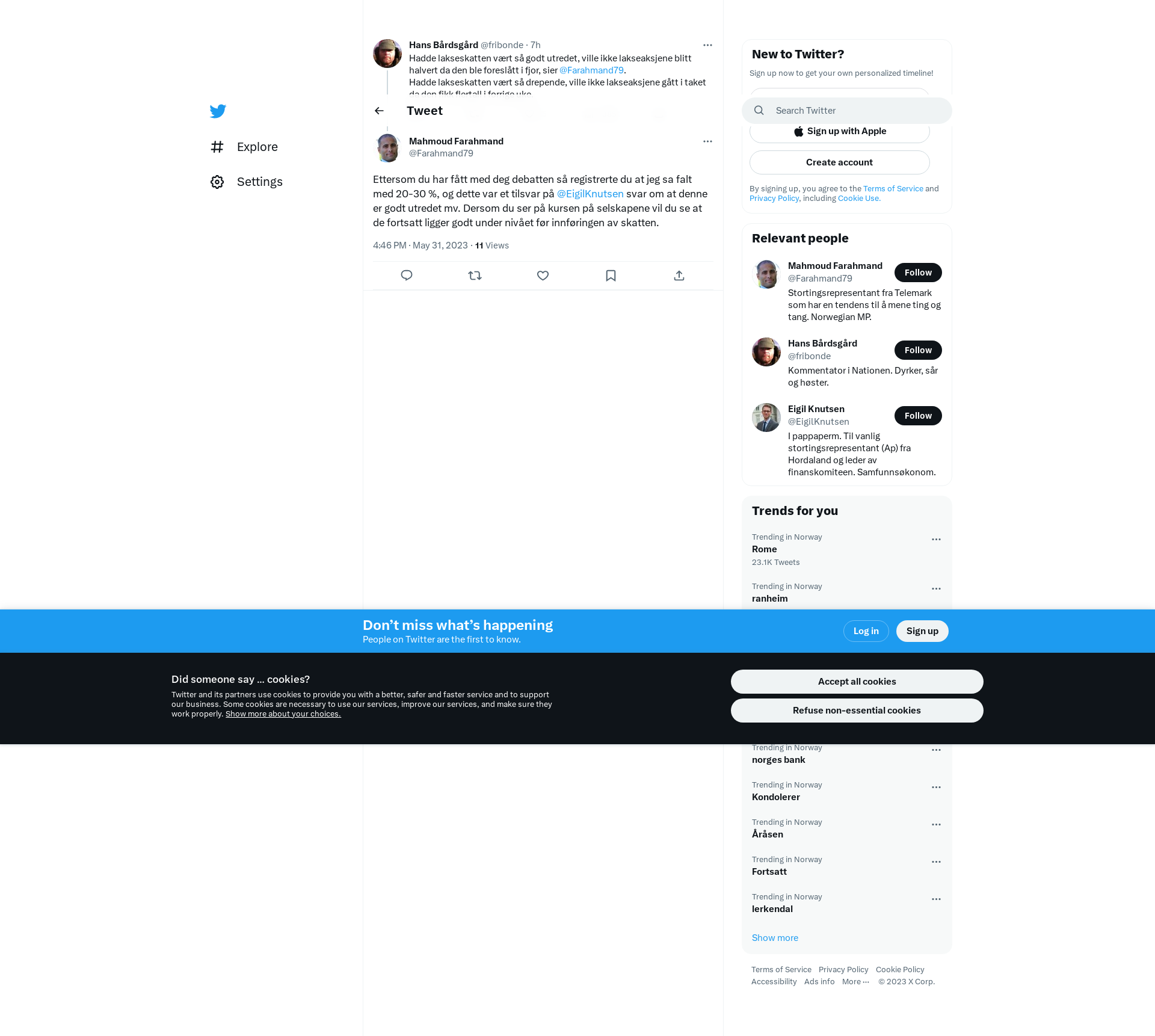 @fribonde Ettersom du har fått med deg debatten så registrerte du at jeg sa falt med 20-30 %, og dette var et tilsvar på @EigilKnutsen svar om at denne er godt utredet mv. Dersom du ser på kursen på selskapene vil du se at de fortsatt ligger godt under nivået før innføringen av skatten.