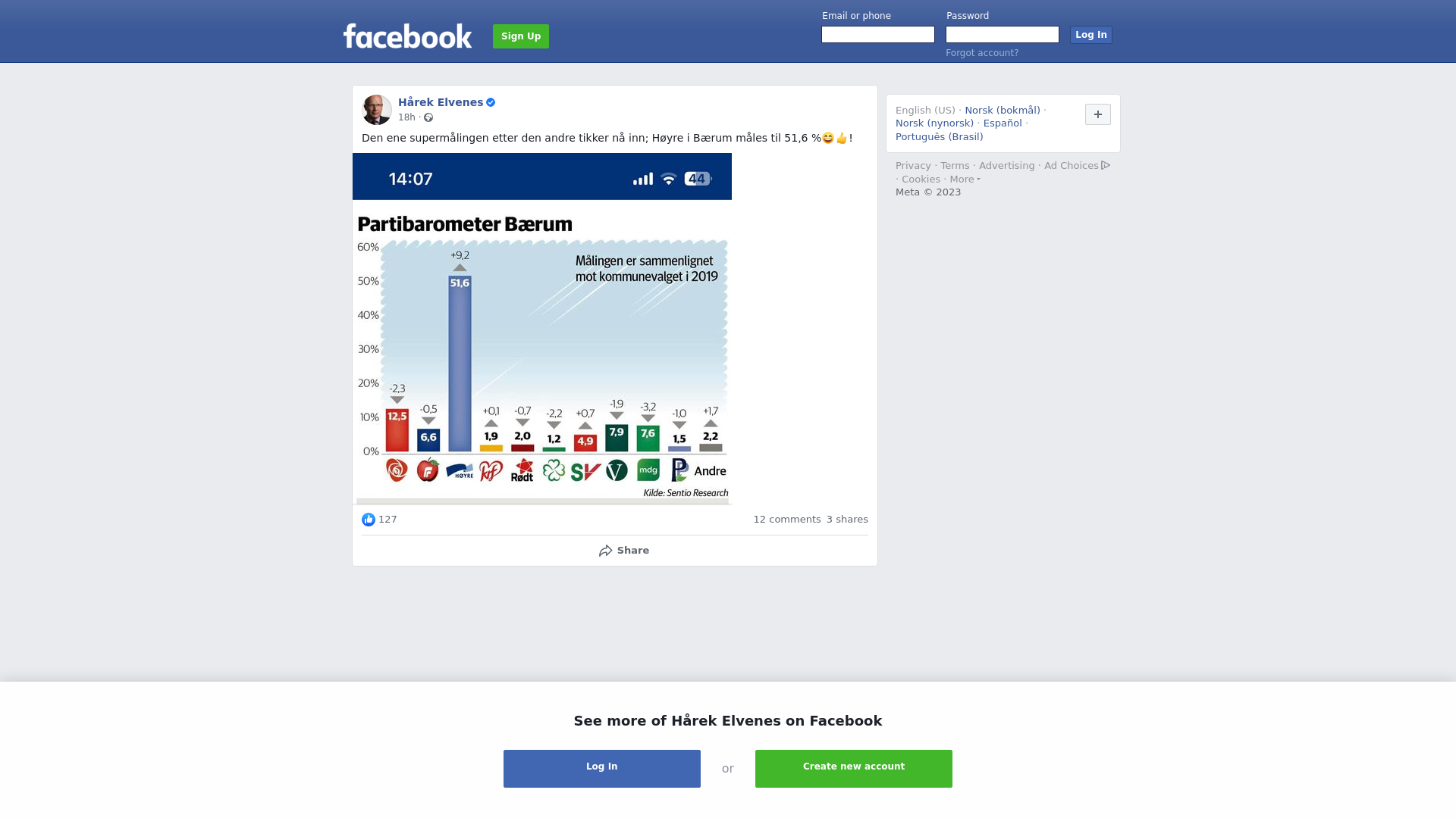 Den ene supermålingen etter den andre tikker nå inn; Høyre i Bærum måles til 51,6 %😄👍!