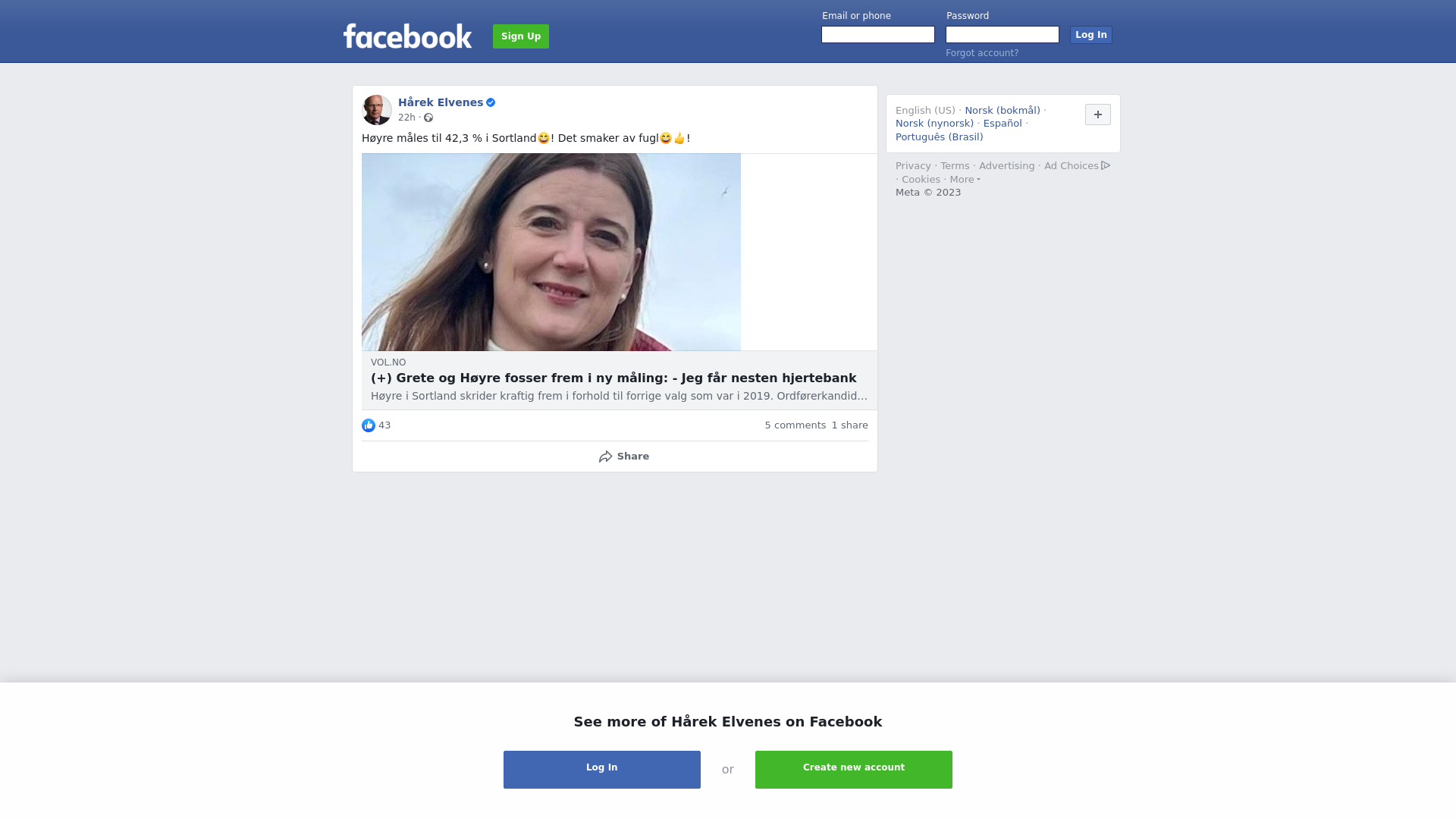 Høyre måles til 42,3 % i Sortland😄! Det smaker av fugl😄👍!