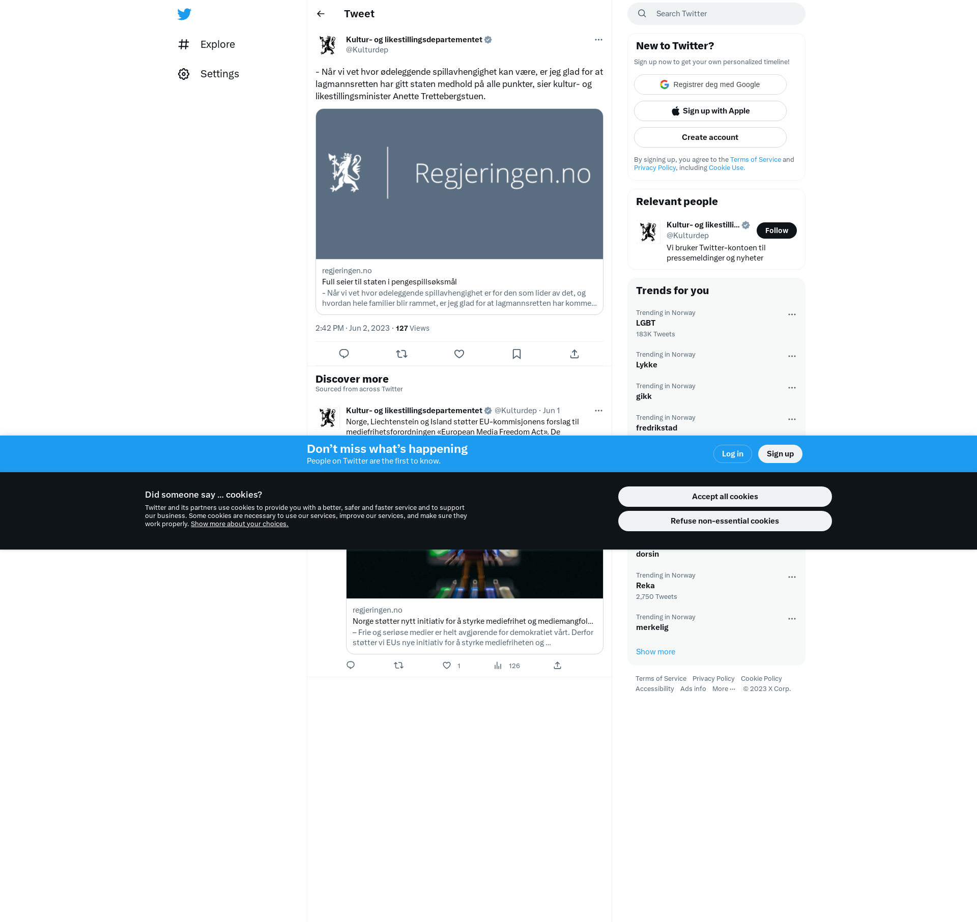 - Når vi vet hvor ødeleggende spillavhengighet kan være, er jeg glad for at lagmannsretten har gitt staten medhold på alle punkter, sier kultur- og likestillingsminister Anette Trettebergstuen. https://t.co/qEvLgcuHFz