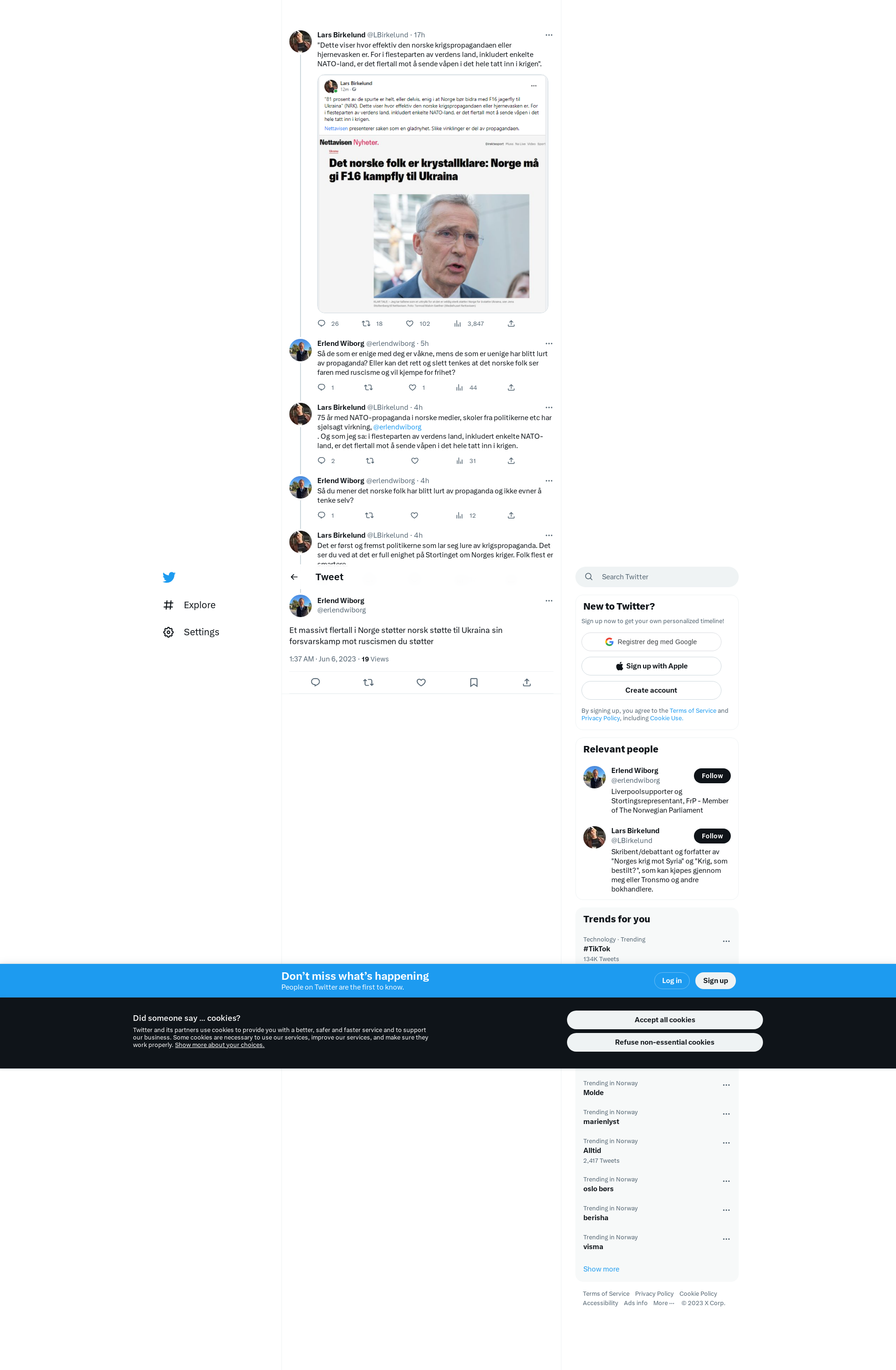 @LBirkelund Et massivt flertall i Norge støtter norsk støtte til Ukraina sin forsvarskamp mot ruscismen du støtter