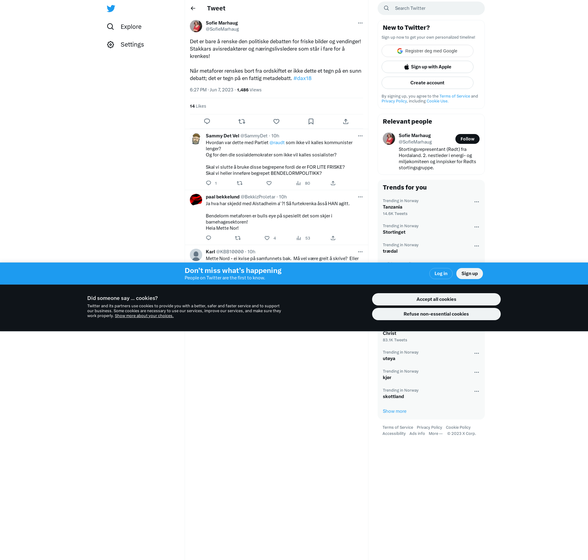 Det er bare å renske den politiske debatten for friske bilder og vendinger! Stakkars avisredaktører og næringslivsledere som står i fare for å krenkes!\n\nNår metaforer renskes bort fra ordskiftet er ikke dette et tegn på en sunn debatt; det er tegn på en fattig metadebatt. #dax18