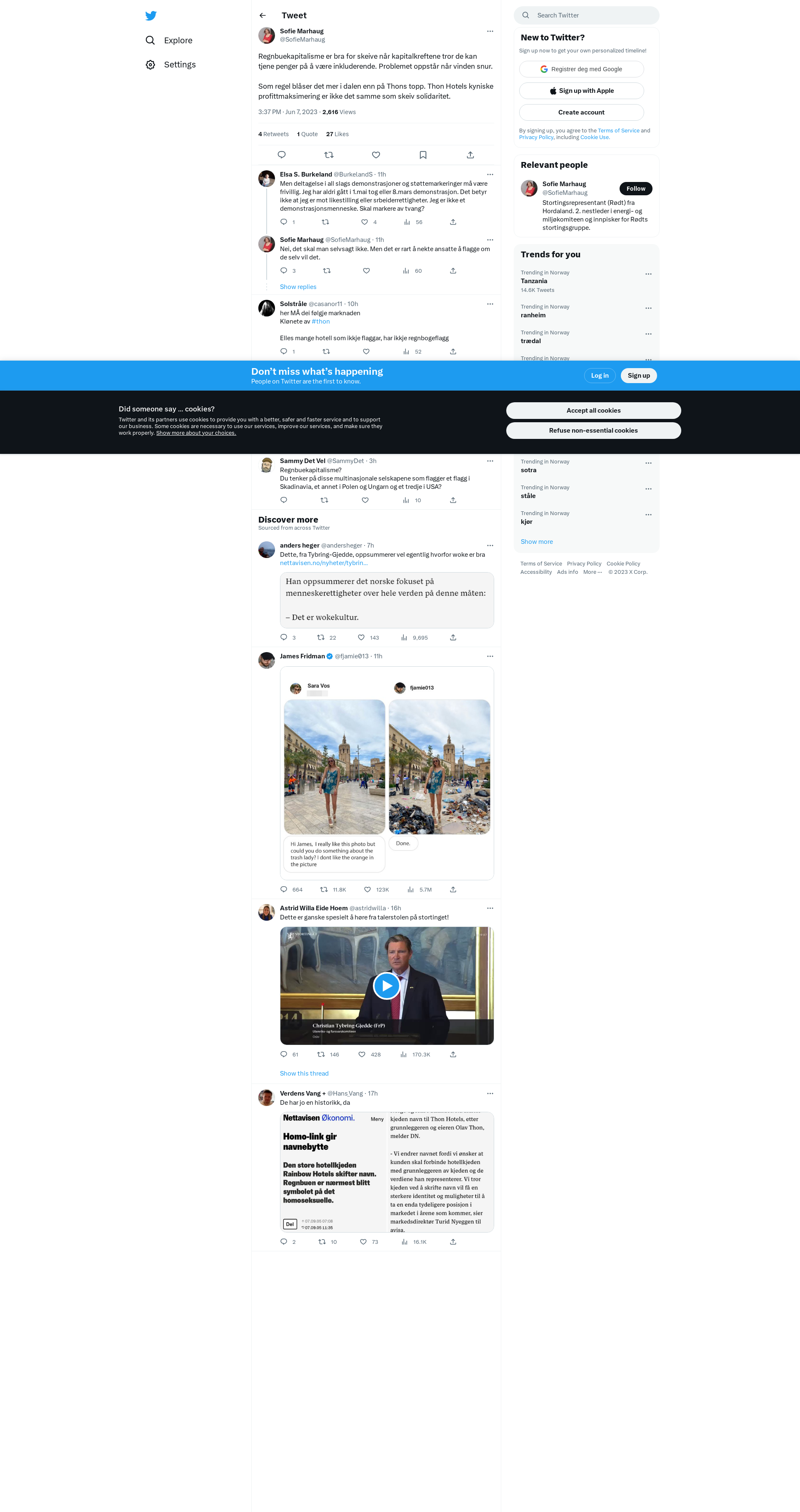 Regnbuekapitalisme er bra for skeive når kapitalkreftene tror de kan tjene penger på å være inkluderende. Problemet oppstår når vinden snur. \n\nSom regel blåser det mer i dalen enn på Thons topp. Thon Hotels kyniske profittmaksimering er ikke det samme som skeiv solidaritet.