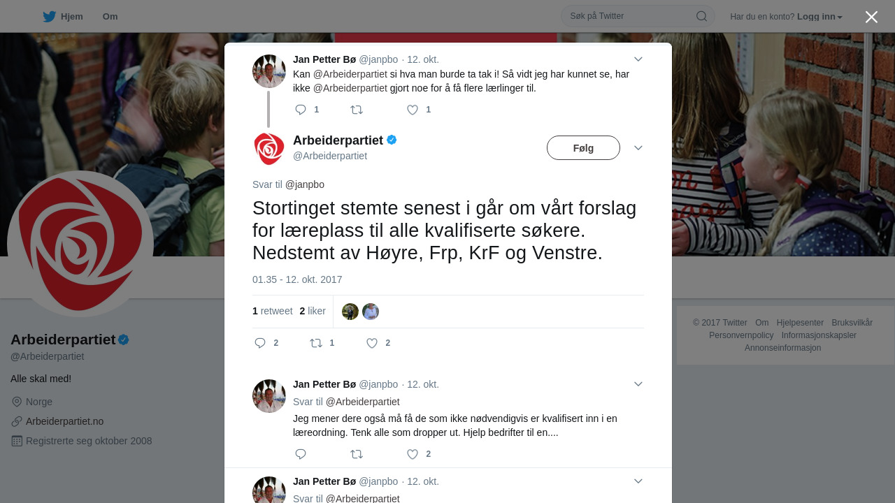 @janpbo Stortinget stemte senest i går om vårt forslag for læreplass til alle kvalifiserte søkere. Nedstemt av Høyre, Frp, KrF og Venstre.