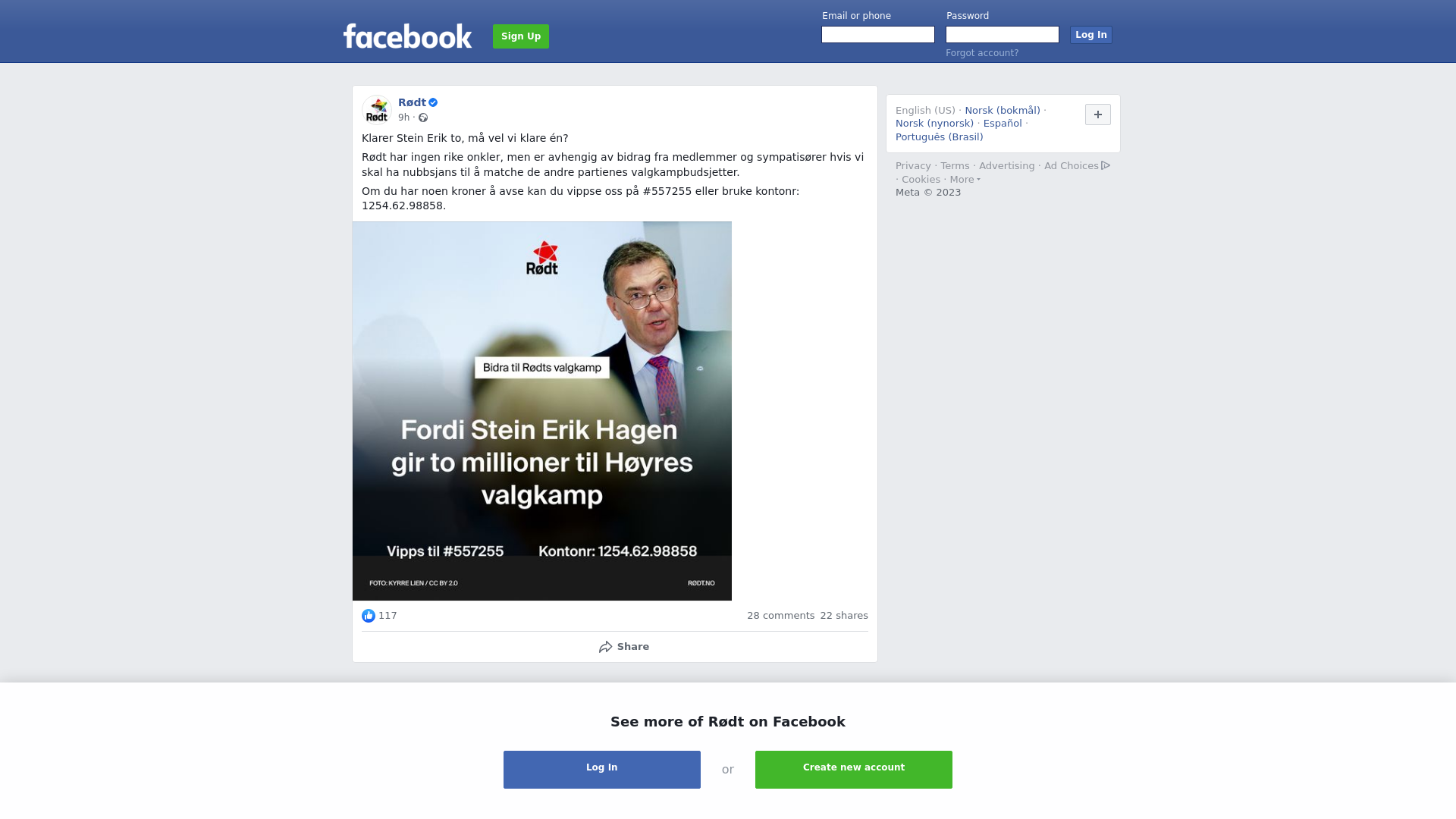 Klarer Stein Erik to, må vel vi klare én? \n\nRødt har ingen rike onkler, men er avhengig av bidrag fra medlemmer og sympatisører hvis vi skal ha nubbsjans til å matche de andre partienes valgkampbudsjetter. \n\nOm du har noen kroner å avse kan du vippse oss på #557255 eller bruke kontonr: 1254.62.98858.