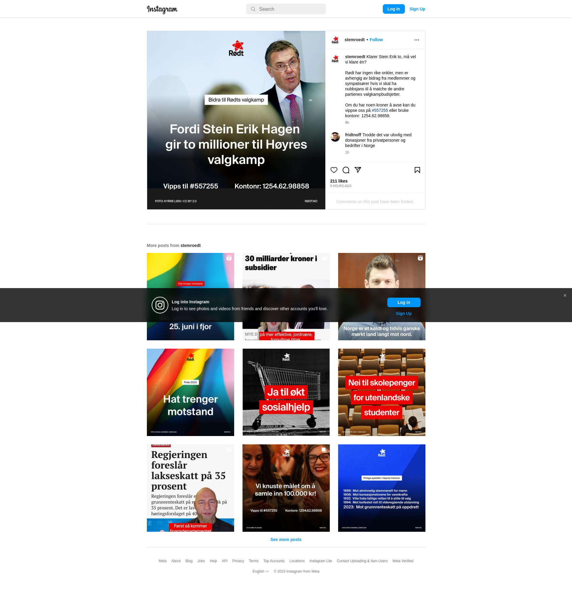 Klarer Stein Erik to, må vel vi klare én? \n\nRødt har ingen rike onkler, men er avhengig av bidrag fra medlemmer og sympatisører hvis vi skal ha nubbsjans til å matche de andre partienes valgkampbudsjetter. \n\nOm du har noen kroner å avse kan du vippse oss på #557255 eller bruke kontonr: 1254.62.98858.