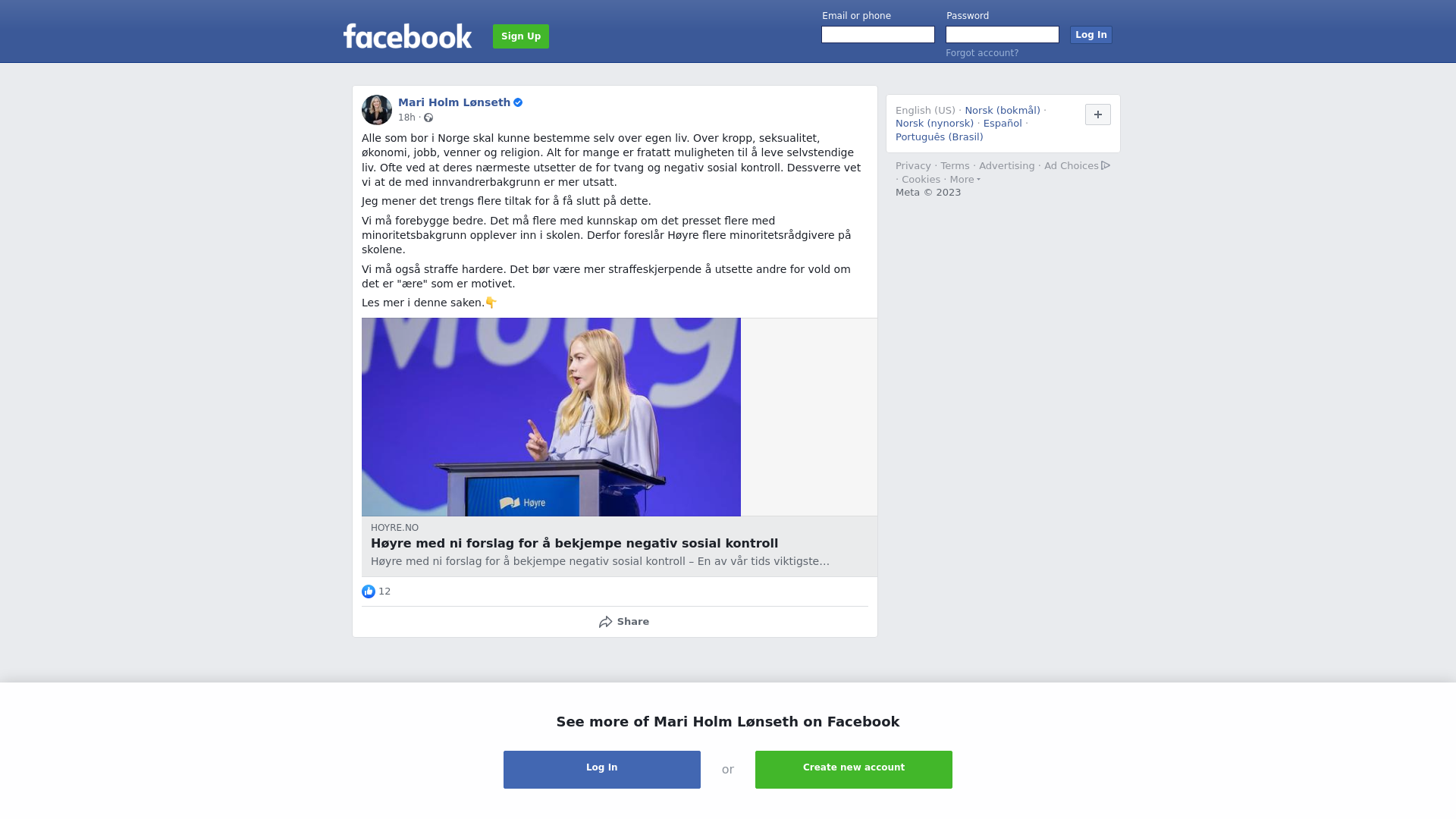 Alle som bor i Norge skal kunne bestemme selv over egen liv. Over kropp, seksualitet, økonomi, jobb, venner og religion. Alt for mange er fratatt muligheten til å leve selvstendige liv. Ofte ved at deres nærmeste utsetter de for tvang og negativ sosial kontroll. Dessverre vet vi at de med innvandrerbakgrunn er mer utsatt.\n\nJeg mener det trengs flere tiltak for å få slutt på dette. \n\nVi må forebygge bedre. Det må flere med kunnskap om det presset flere med minoritetsbakgrunn opplever inn i skolen. Derfor foreslår Høyre flere minoritetsrådgivere på skolene. \n\nVi må også straffe hardere. Det bør være mer straffeskjerpende å utsette andre for vold om det er "ære" som er motivet.\n\nLes mer i denne saken.👇