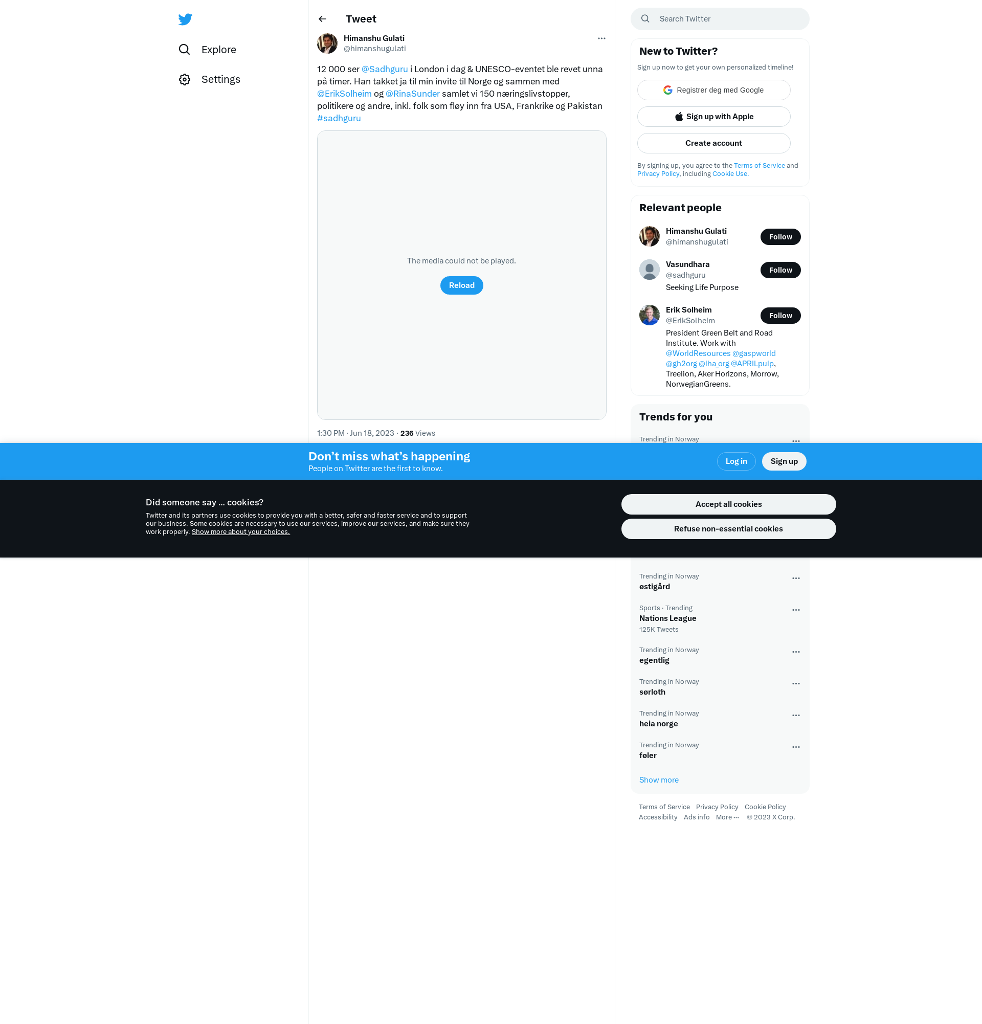 12 000 ser @Sadhguru i London i dag & UNESCO-eventet ble revet unna på timer. Han takket ja til min invite til Norge og sammen med @ErikSolheim og @RinaSunder samlet vi 150 næringslivstopper, politikere og andre, inkl. folk som fløy inn fra USA, Frankrike og Pakistan #sadhguru https://t.co/io2PnuOSkQ
