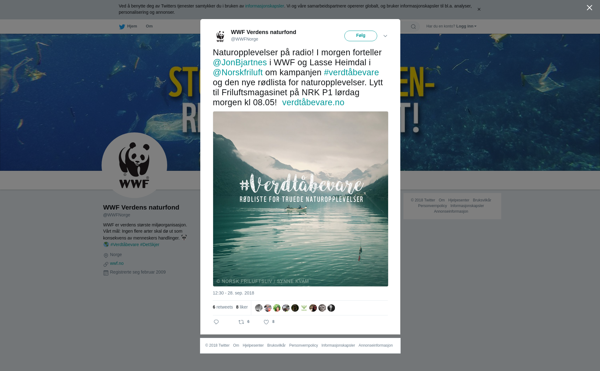 RT @WWFNorge: Naturopplevelser på radio! I morgen forteller @JonBjartnes i WWF og Lasse Heimdal i @Norskfriluft om kampanjen #verdtåbevare og den nye rødlista for naturopplevelser. Lytt til Friluftsmagasinet på NRK P1 lørdag morgen kl 08.05! https://t.co/GlRnWZdvEA https://t.co/0jdDFElglS