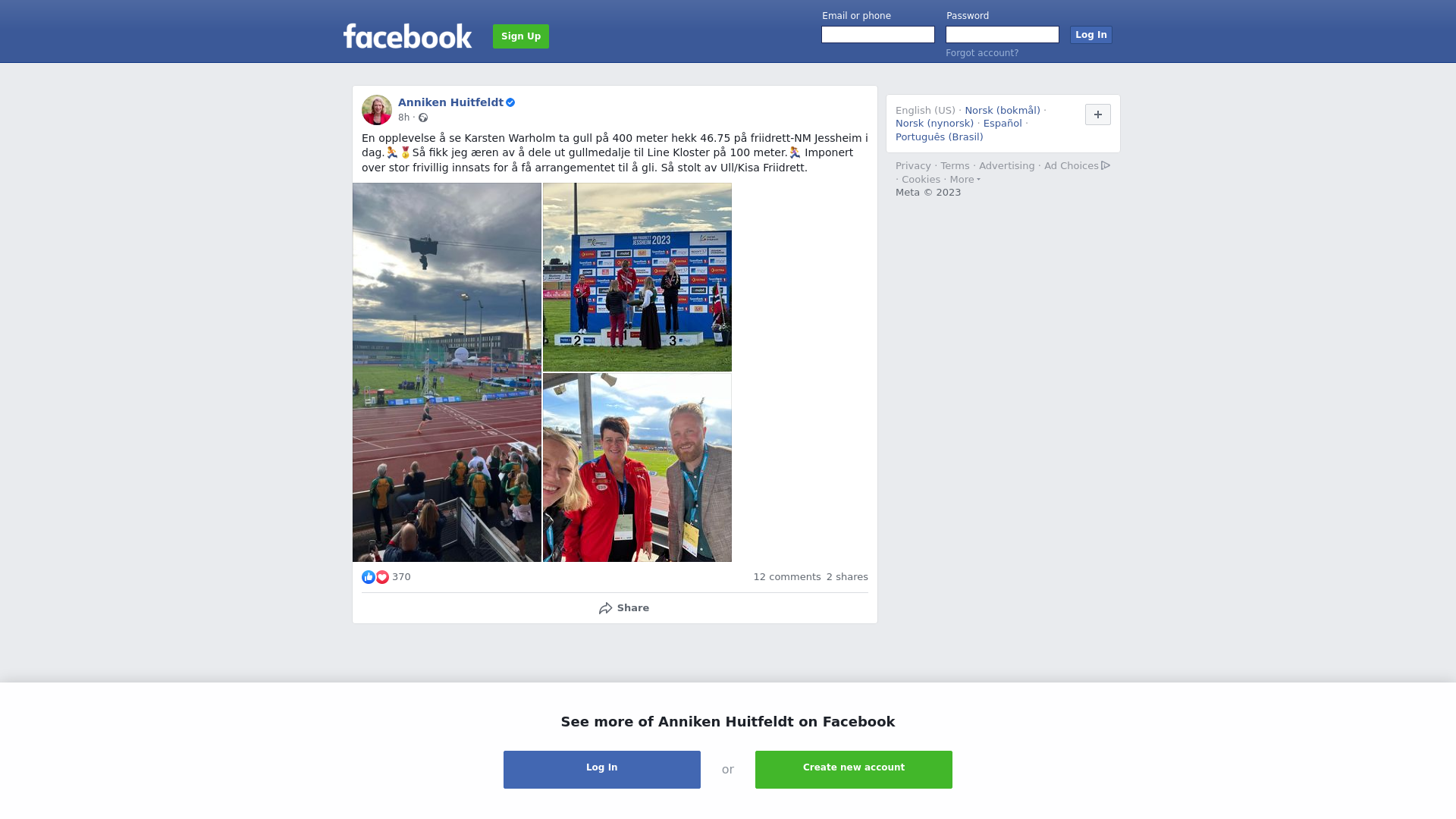 En opplevelse å se Karsten Warholm ta gull på 400 meter hekk 46.75 på friidrett-NM Jessheim i dag.🏃🥇Så fikk jeg æren av å dele ut gullmedalje til Line Kloster på 100 meter.🏃♀️ Imponert over stor frivillig innsats for å få arrangementet til å gli. Så stolt av Ull/Kisa Friidrett.