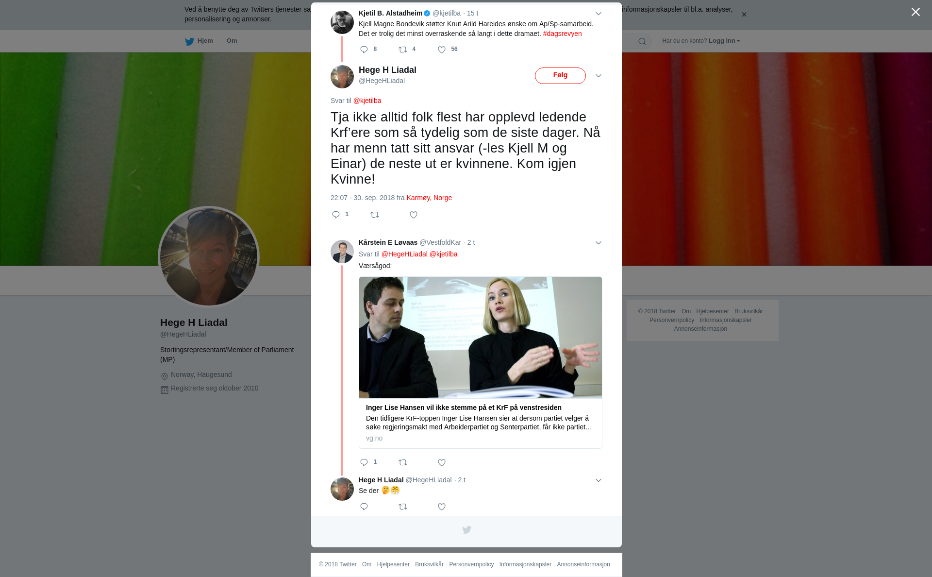 @kjetilba Tja ikke alltid folk flest har opplevd ledende Krf’ere som så tydelig som de siste dager. Nå har menn tatt sitt ansvar (-les Kjell M og Einar) de neste ut er kvinnene. Kom igjen Kvinne!