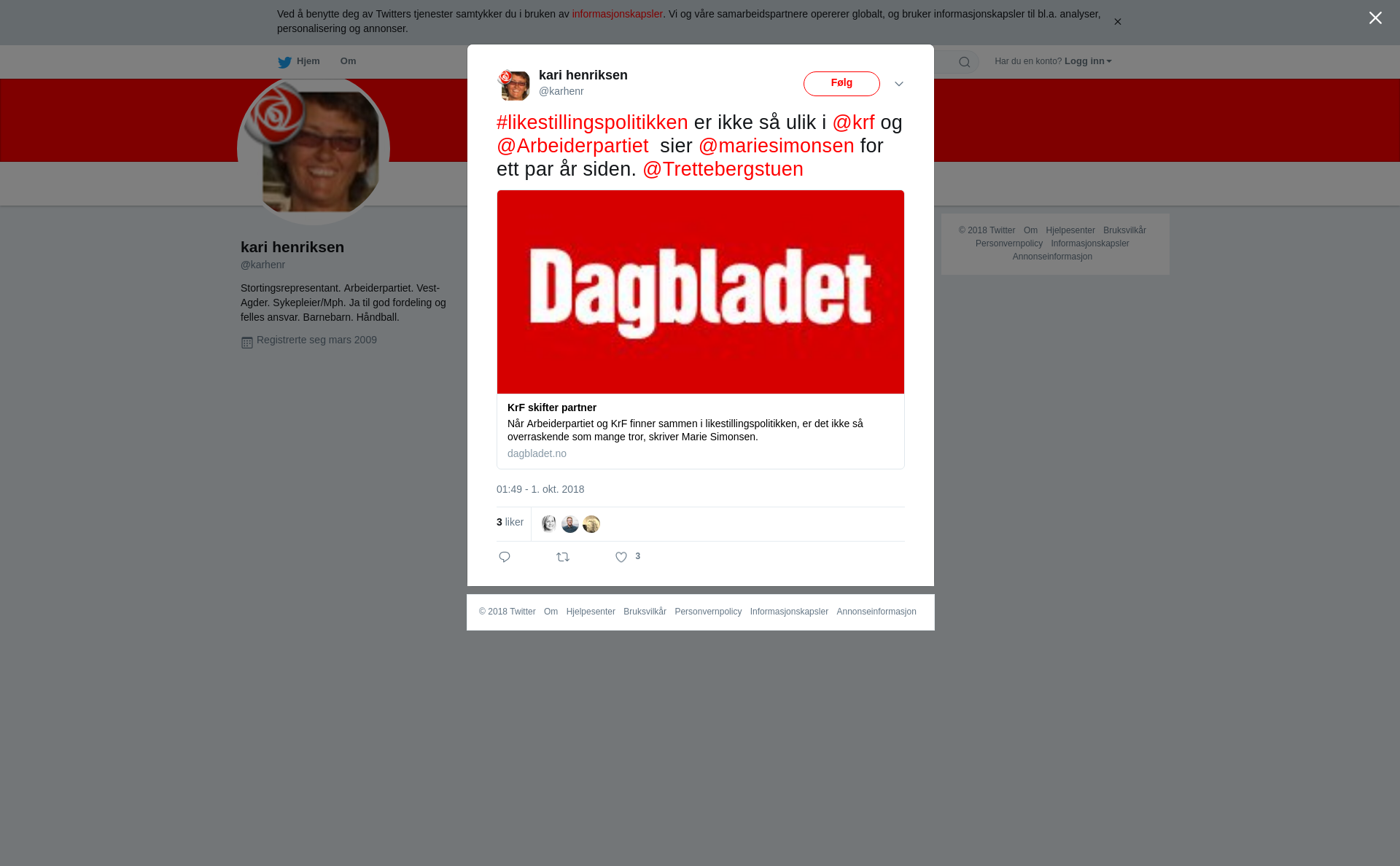 #likestillingspolitikken er ikke så ulik i @krf og @Arbeiderpartiet sier @mariesimonsen for ett par år siden. @Trettebergstuen https://t.co/M5DXypaOh8