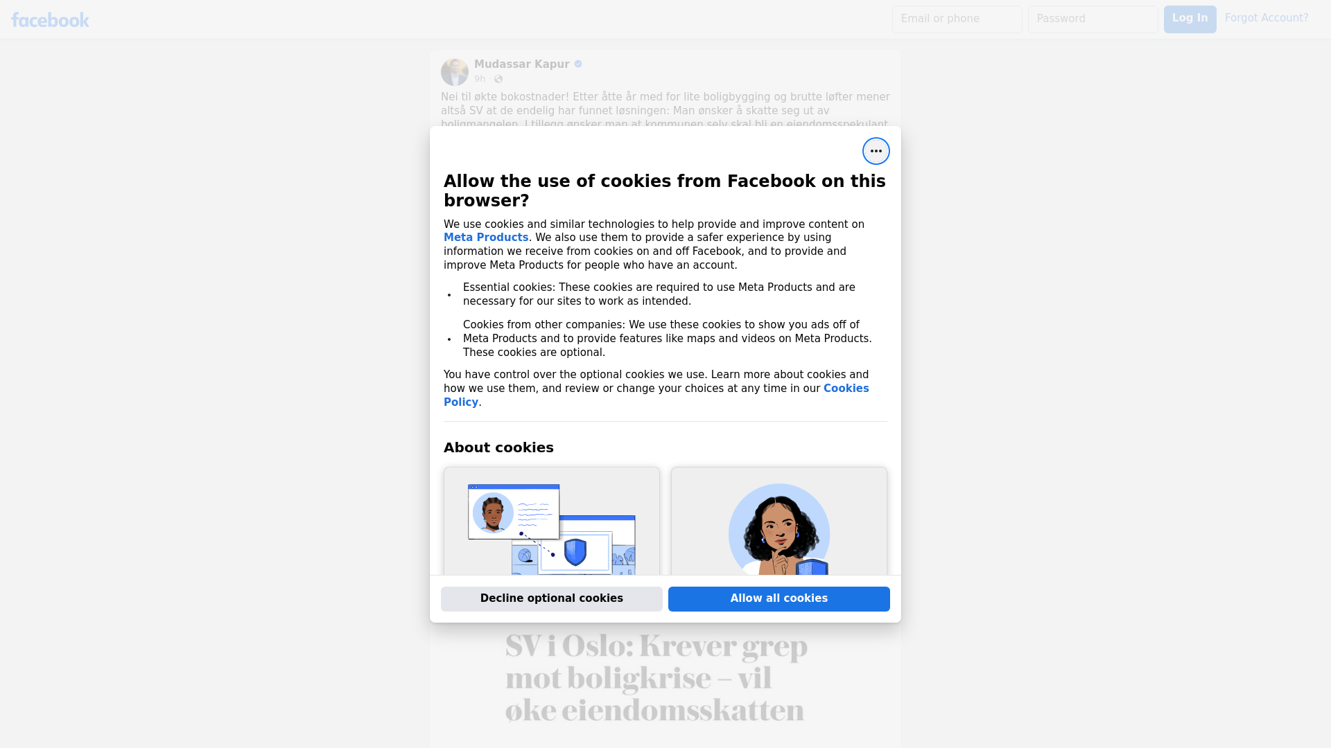 Nei til økte bokostnader! Hvor skal jeg begynne? Etter åtte år med for lite boligbygging og brutte løfter mener altså SV at de endelig har funnet løsningen: Man ønsker å skatte seg ut av boligmangelen. I tillegg ønsker man at kommunen selv skal bli en eiendomsspekulant🙈\n\nDet siste folk trenger er at byrådet øker folks allerede høye bo- og levekostnader ved å øke eiendomsskatten ytterligere. Boligen er folks hjem, ikke et investeringsobjekt. Og folks hjem er i hvert fall ikke kommunens gullkort som politikerne kan bruke fordi man selv ikke klarer å prioritere bedre. Høyre har fremmet en rekke konkrete forslag både nasjonalt og lokalt som vil bidra til å bygge mer og hjelpe flere med å oppfylle boligdrømmen. Kanskje man heller bør støtte dem?\n\nVi må bygge oss ut av boligmangelen, ikke skatte oss ut av den! Enig?