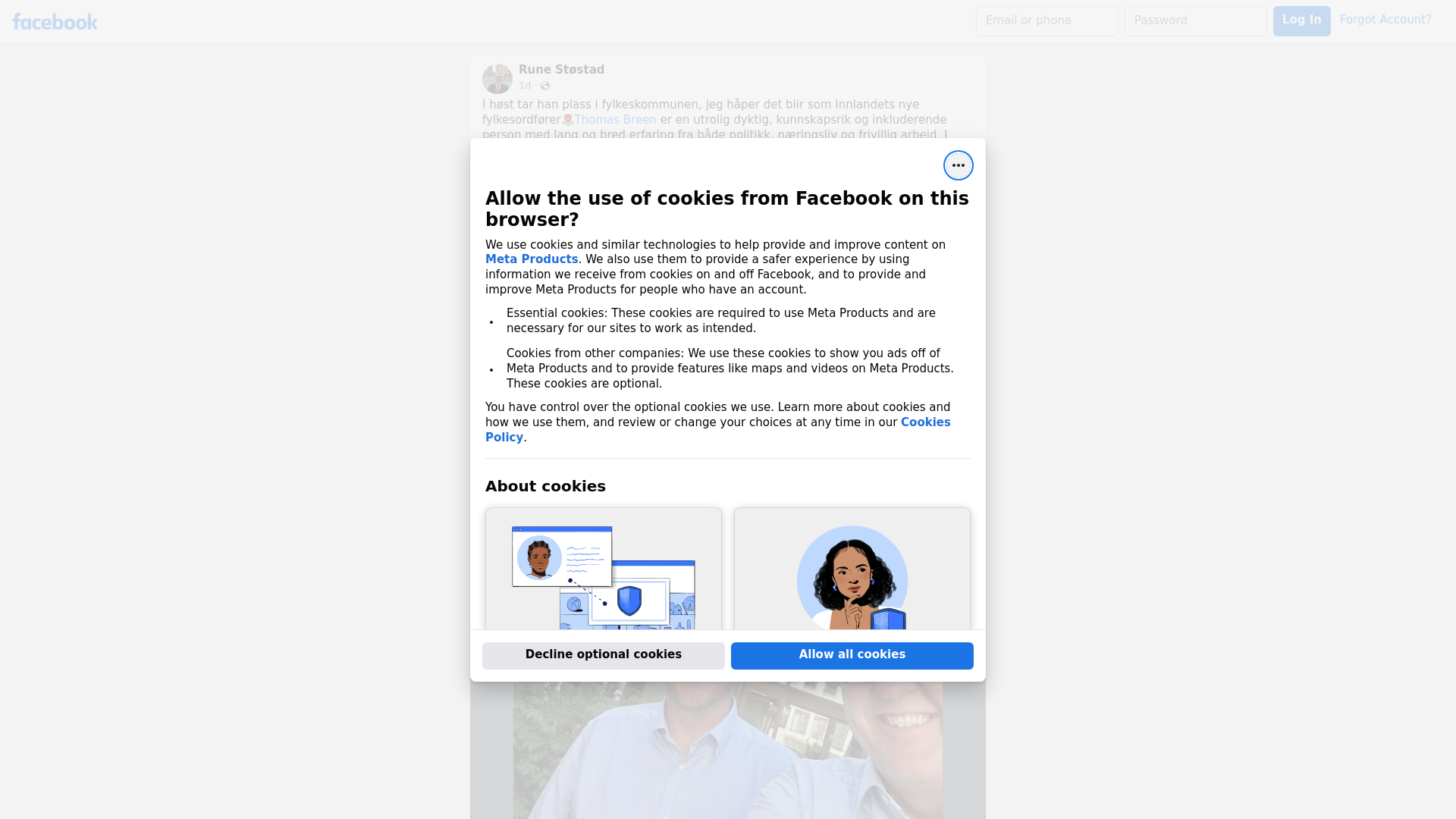 I høst tar han plass i fylkeskommunen, jeg håper det blir som Innlandets nye fylkesordfører🌹Thomas Breen er en utrolig dyktig, kunnskapsrik og inkluderende person med lang og bred erfaring fra både politikk, næringsliv og frivillig arbeid. I valgkampen har han besøkt over 100 bedrifter i Innlandet. Det er fordi han vet hvor viktig næringslivet er. For å ha levende lokalsamfunn i hele Innlandet. For å kunne opprettholde det gode velferdstilbudet vi har. \nOpprinnelig fra Folldal, nå bosatt i Hamar. Det betyr at han kjenner godt både mjøsregionen og distrikta i vårt store fylke. Om snaue to uker skal vi stemme inn folk i kommunestyrene, men også inn i fylkestinget. Jeg håper mange flere enn meg gir sin stemme til Thomas, Iselin, Tom og resten av det gode laget som har stilt seg til disposisjon for fylkespolitikken🌹🌹