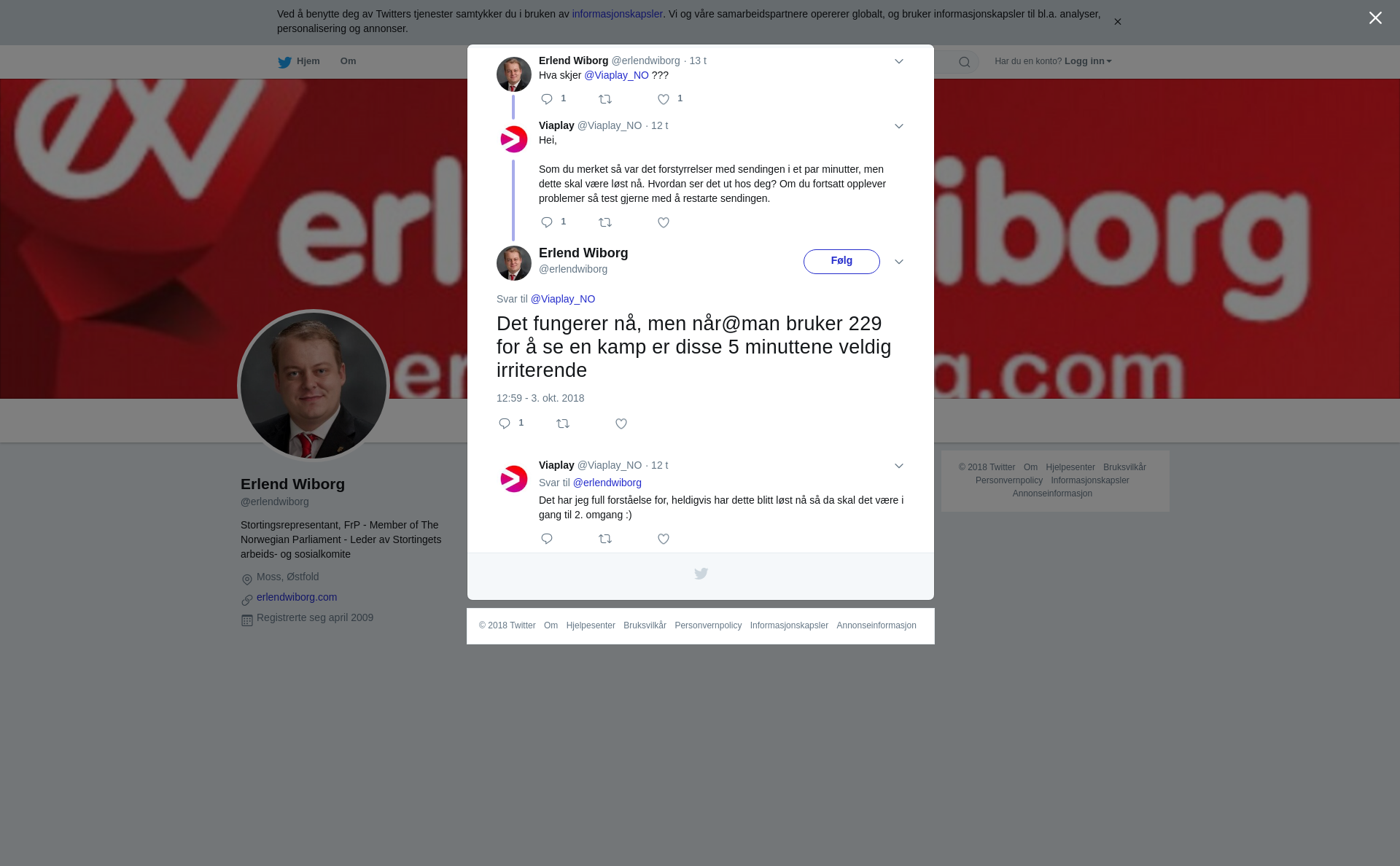 @Viaplay_NO Det fungerer nå, men når@man bruker 229 for å se en kamp er disse 5 minuttene veldig irriterende