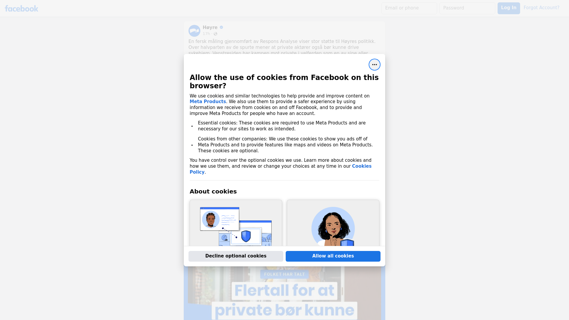 En fersk måling gjennomført av Respons Analyse viser stor støtte til Høyres politikk. Over halvparten av de spurte mener at private aktører også bør kunne drive sykehjem. Venstresiden har kampen mot private i velferden som en av sine aller største fanesaker. De bommer kolossalt hvis de tror at det sårbare eldre og slitne pårørende er opptatt av er hvem som driver sykehjemmet. Det viktigste for Høyre er at kvaliteten i eldreomsorgen er god og at alle får være sjef i eget liv - også i alderdommen.\n\nPrivate kan bidra til mer og bedre velferd. De bidrar til innovasjon, og med kapasitet og beredskap. Det har vi sett både under pandemien og da krigen i Ukraina brøt ut. Og som Erna sier i artikkelen: «Hvis du gjør alt du kan for å bekjempe alle private initiativ fra mandag til lørdag, så kan du ikke forvente at de fortsatt finnes når du trenger de på søndag.\n\nHøyre mener at trygghet, kvalitet og aktivitet er det viktigste i eldreomsorgen. Derfor jobber vi for et samfunn der det offentlige er bærebjelken, og skal ta regningen for folk, uavhengig av om behandlingssenteret, hjemmehjelpen eller sykehjemmet driftes av det offentlige, ideelle eller private.\n\nEnig? Les mer i artikkelen under og husk å stem Høyre! 💙\n\nhttps://www.vg.no/nyheter/innenriks/i/eJoE8g/maaling-flertall-vil-slippe-til-private-paa-sykehjem