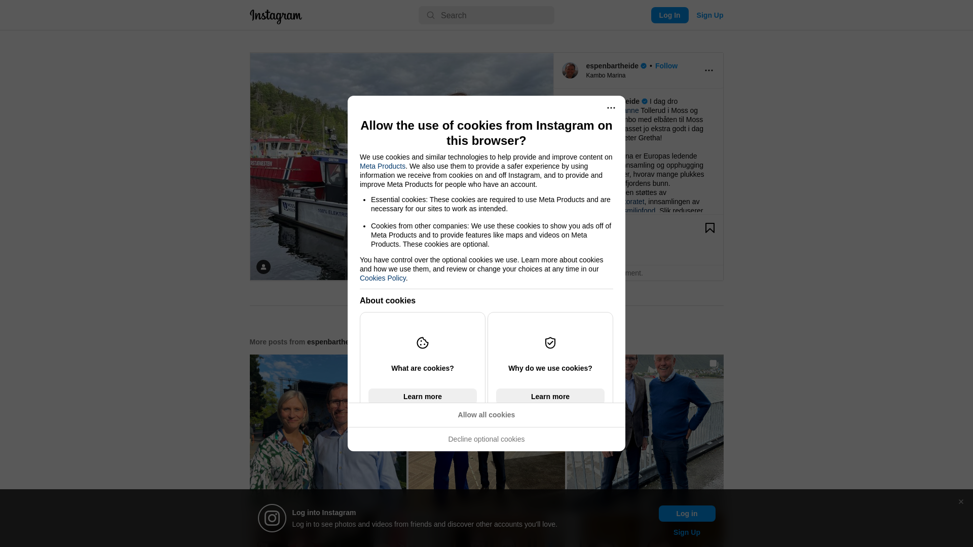 I dag dro @ordforerhanne Tollerud i Moss og jeg ut til Kambo med elbåten til Moss Havn. Det passet jo ekstra godt i dag at elbåten heter Gretha! \n\nKambo Marina er Europas ledende anlegg for innsamling og opphugging av fritidsbåter, hvorav mange plukkes opp på Oslofjordens bunn. Opphuggingen støttes av @miljodirektoratet, innsamlingen av @handelensmiljofond. Slik reduserer vi mikroplast og annen forurensning i fjorden kraftig. Svært imponert over hva vi fikk se her!
