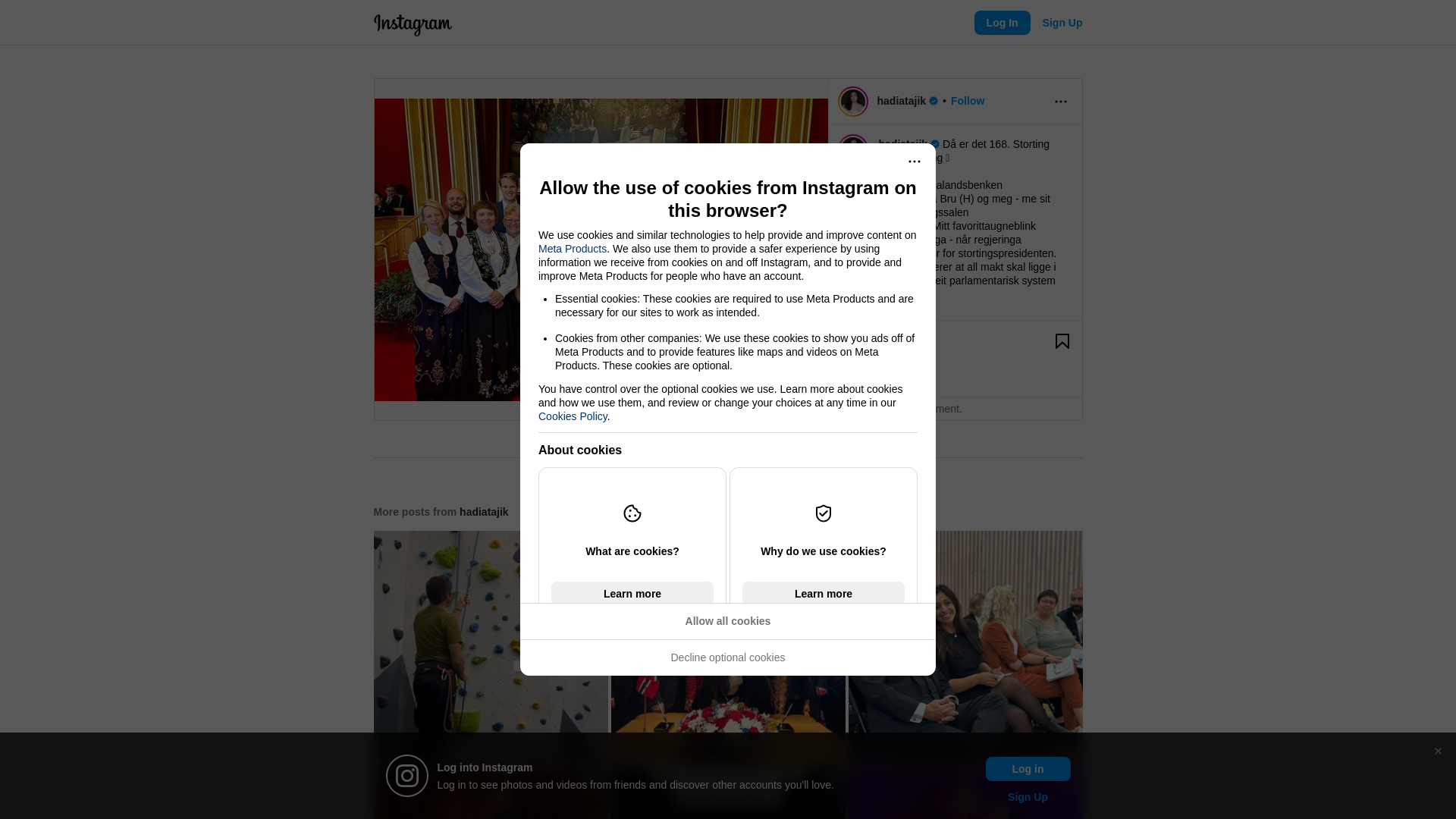 Då er det 168. Storting formelt i gang 🌹\n\nBilde 1: Rogalandsbenken\nBilde 2: Tina Bru (H) og meg - me sit ilag i stortingssalen\nBilde 3: 📸❤️ Mitt favorittaugneblink under opninga - når regjeringa bukker/ neier for stortingspresidenten. Det signaliserer at all makt skal ligge i Stortinget, i eit parlamentarisk system som vårt.