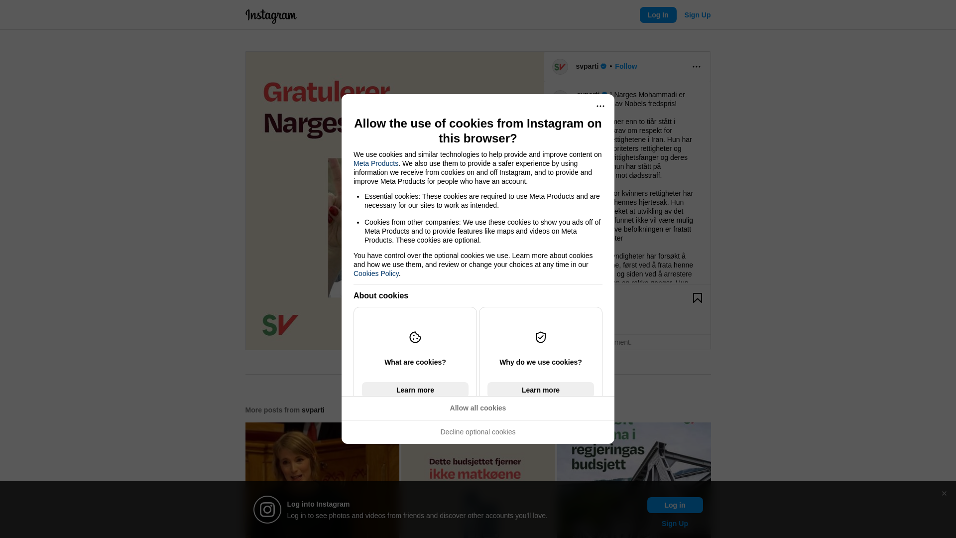 🕊️ Narges Mohammadi er årets vinner av Nobels fredspris!\n\n✊ Hun har i mer enn to tiår stått i spissen for krav om respekt for menneskerettighetene i Iran. Hun har forsvart minoriteters rettigheter og støttet samvittighetsfanger og deres familier, og hun har stått på barrikadene mot dødsstraff. \n\n🇮🇷 Kampen for kvinners rettigheter har likevel vært hennes hjertesak. Hun har understreket at utvikling av det iranske samfunnet ikke vil være mulig så lenge halve befolkningen er fratatt sine rettigheter\n\n⛓️ Iranske myndigheter har forsøkt å stoppe henne, først ved å frata henne arbeidet sitt, og siden ved å arrestere tobarnsmoren en rekke ganger. Hun har tilbrakt nærmere ti år i fengsel og opplevd lange perioder med isolasjon og tortur som har hatt store konsekvenser for hennes helse. \n\n❤️ Dette er en velfortjent anerkjennelse av hennes kamp og jeg håper den vil føre økt internasjonal støtte til de iranske aktivistene. \n\nKvinne - Liv - Frihet\n\n #WomanLifeFreedom