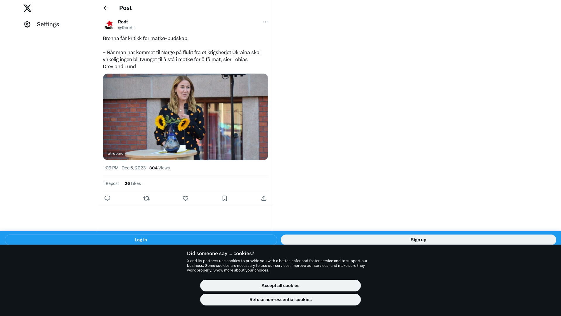 Brenna får kritikk for matkø-budskap:\n\n– Når man har kommet til Norge på flukt fra et krigsherjet Ukraina skal virkelig ingen bli tvunget til å stå i matkø for å få mat, sier Tobias Drevland Lund\n\nhttps://t.co/meXxiRj8ei