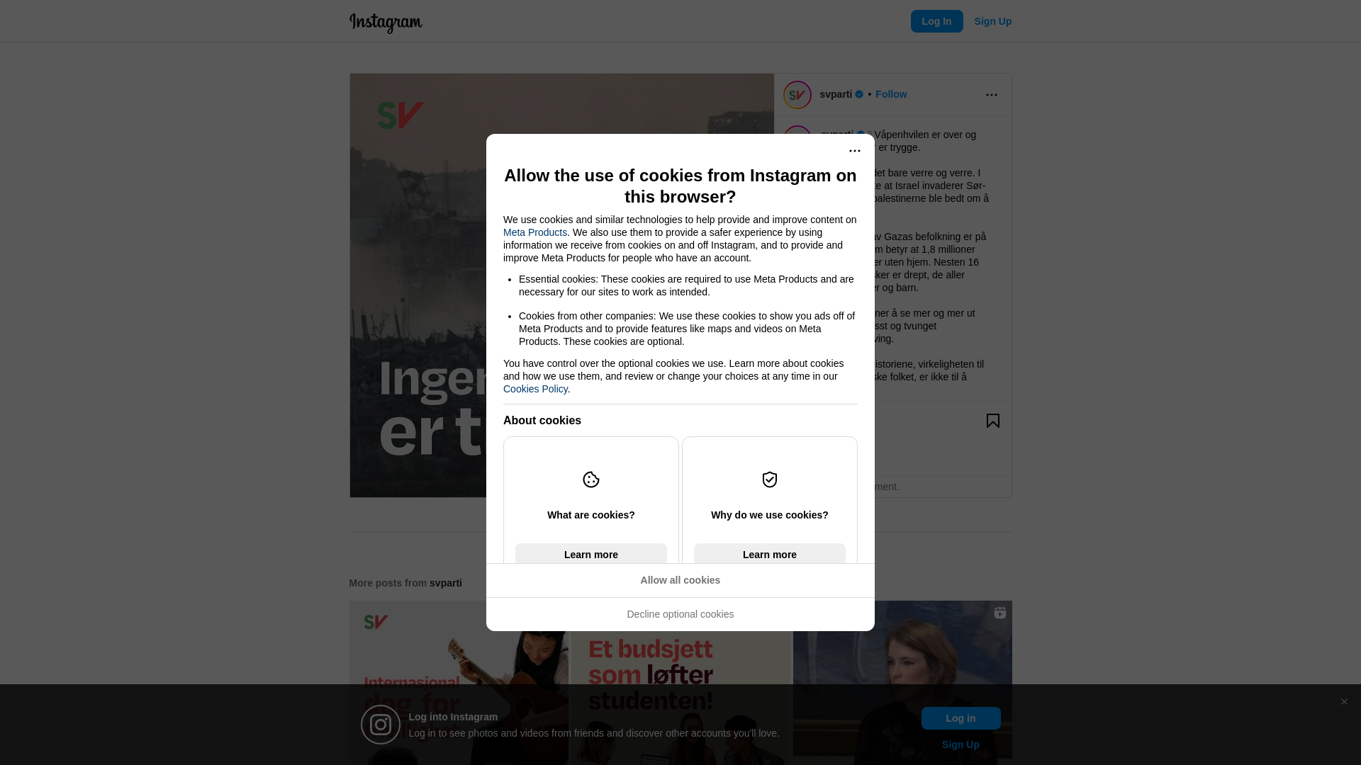 💔 Våpenhvilen er over og ingen steder er trygge.\n\nFaktisk blir det bare verre og verre. I går fikk vi vite at Israel invaderer Sør-Gaza, som palestinerne ble bedt om å flykte til. \n\n80 prosent av Gazas befolkning er på flukt, noe som betyr at 1,8 millioner mennesker er uten hjem. Nesten 16 000 mennesker er drept, de aller fleste kvinner og barn.\n\nDette begynner å se mer og mer ut som en bevisst og tvunget massefordriving.\n\n🇵🇸 Bildene, historiene, virkeligheten til det palestinske folket, er ikke til å holde ut. \n\n📢 Vi må gjøre mye mer. SV ber regjeringen anerkjenne Palestina og innføre sanksjoner mot Israel NÅ!