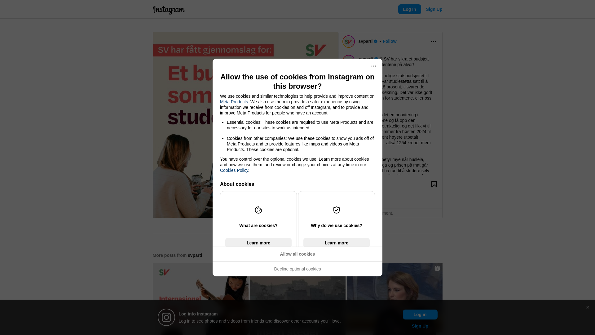 ❤️🔥 SV har sikra et budsjett som tar studentene på alvor!\n\n👎 I det opprinnelige statsbudsjettet til regjeringen var studiestøtta satt til å økes med 3,8 prosent, tilsvarende forventet prisøkning. Det var ikke godt nok, hverken for studentene, eller oss i SV. \n\n✊ Derfor var det en prioritering i forhandlingene og få opp den prosenten betraktelig, og det fikk vi til! Studenter kommer fra høsten 2024 til å få 10 prosent høyere utbetalt studiestøtte – altså 1254 kroner mer i måneden.\n\n🚩 Økningen betyr mye når husleia, strømregninga og prisen på mat går opp. Du skal ha råd til å studere selv om foreldrene dine ikke vippser deg et par tusenlapper i måneden.\n\n🏠 Det trengs også bedre og flere bomuligheter for studente våre og derfor har vi sørget for en økning av utlånsrammen til Husbanken med 5 milliarder kroner, hvor deler av summen er satt til bygging av studentboliger.\n\n🤝 NORPARTs mål er å styrke kvaliteten i høyere utdanning i Norge og utviklingsland gjennom utdanningssamarbeid og gjensidig studentmobilitet. Det var krise at regjeringen kutta i støtten deres i sitt opprinnelige budsjett, og derfor er vi veldig glad for å kunne melde at vi har reversert dette kuttet.\n\n🧑🎓❤️ Alle skal ha lik rett til utdanning!