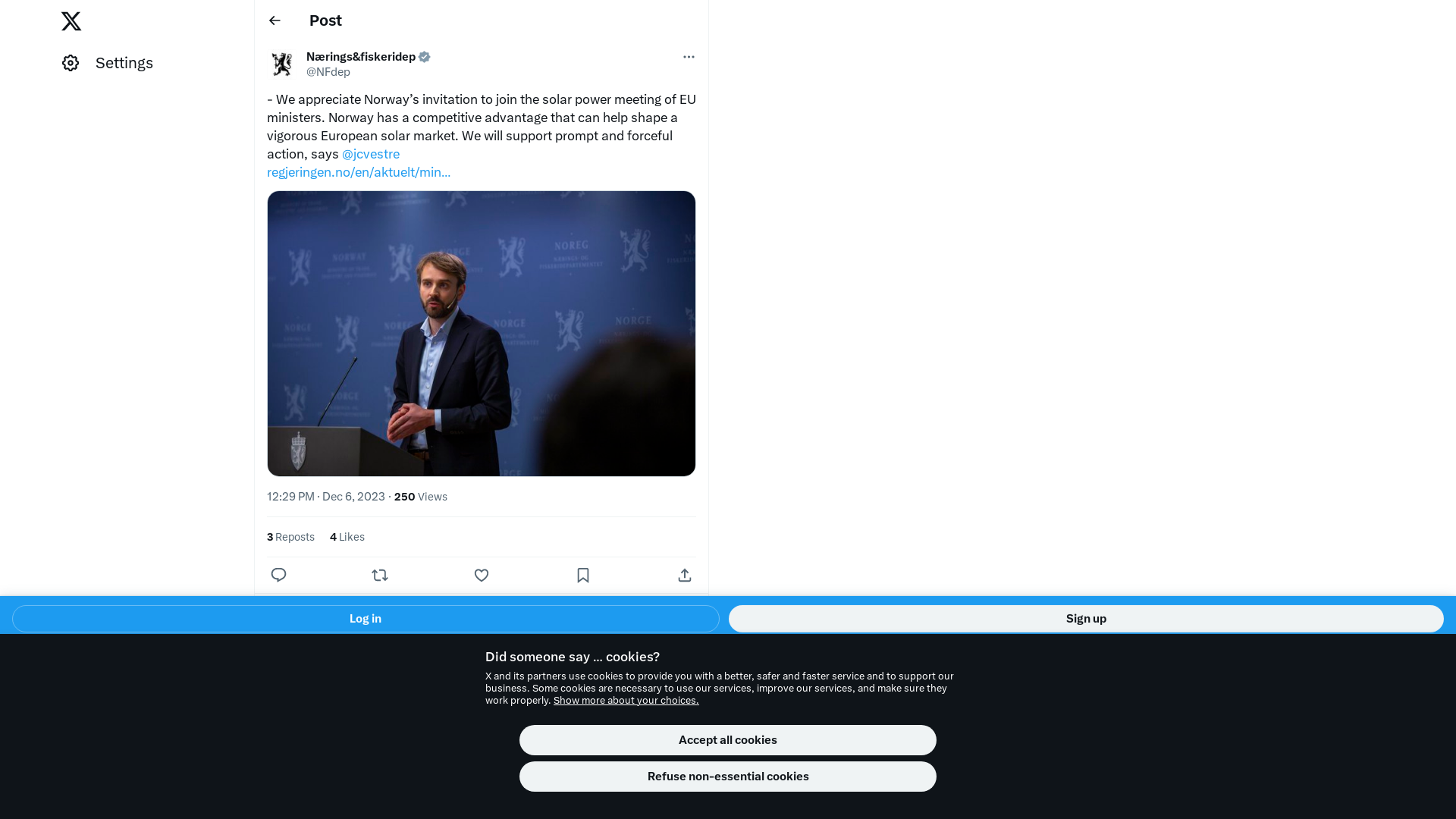 - We appreciate Norway’s invitation to join the solar power meeting of EU ministers. Norway has a competitive advantage that can help shape a vigorous European solar market. We will support prompt and forceful action, says @jcvestre \nhttps://t.co/aCBdBSSXJf https://t.co/WuX7FiUcmB