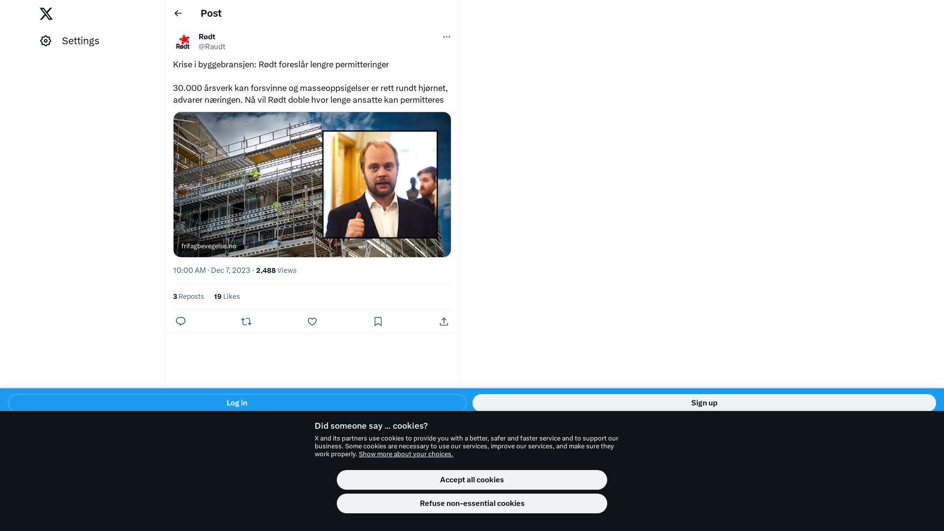 Krise i byggebransjen: Rødt foreslår lengre permitteringer\n\n30.000 årsverk kan forsvinne og masseoppsigelser er rett rundt hjørnet, advarer næringen. Nå vil Rødt doble hvor lenge ansatte kan permitteres\n\nhttps://t.co/1PAuMDZDLO