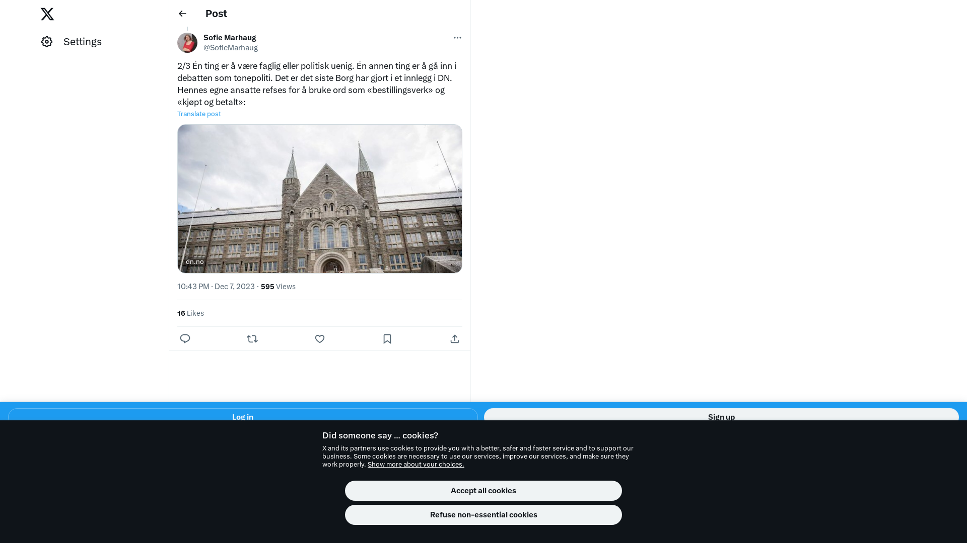 2/3 Én ting er å være faglig eller politisk uenig. Én annen ting er å gå inn i debatten som tonepoliti. Det er det siste Borg har gjort i et innlegg i DN. Hennes egne ansatte refses for å bruke ord som «bestillingsverk» og «kjøpt og betalt»:\n\nhttps://t.co/M6wXmM7YsT