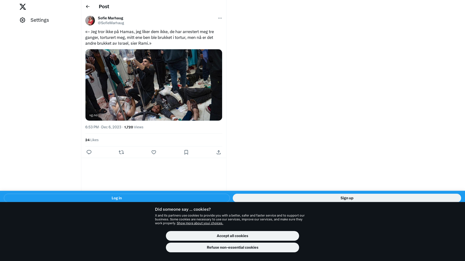 «– Jeg tror ikke på Hamas, jeg liker dem ikke, de har arrestert meg tre ganger, torturert meg, mitt ene ben ble brukket i tortur, men nå er det andre brukket av Israel, sier Rami.»\n\nhttps://t.co/475KWA84T8
