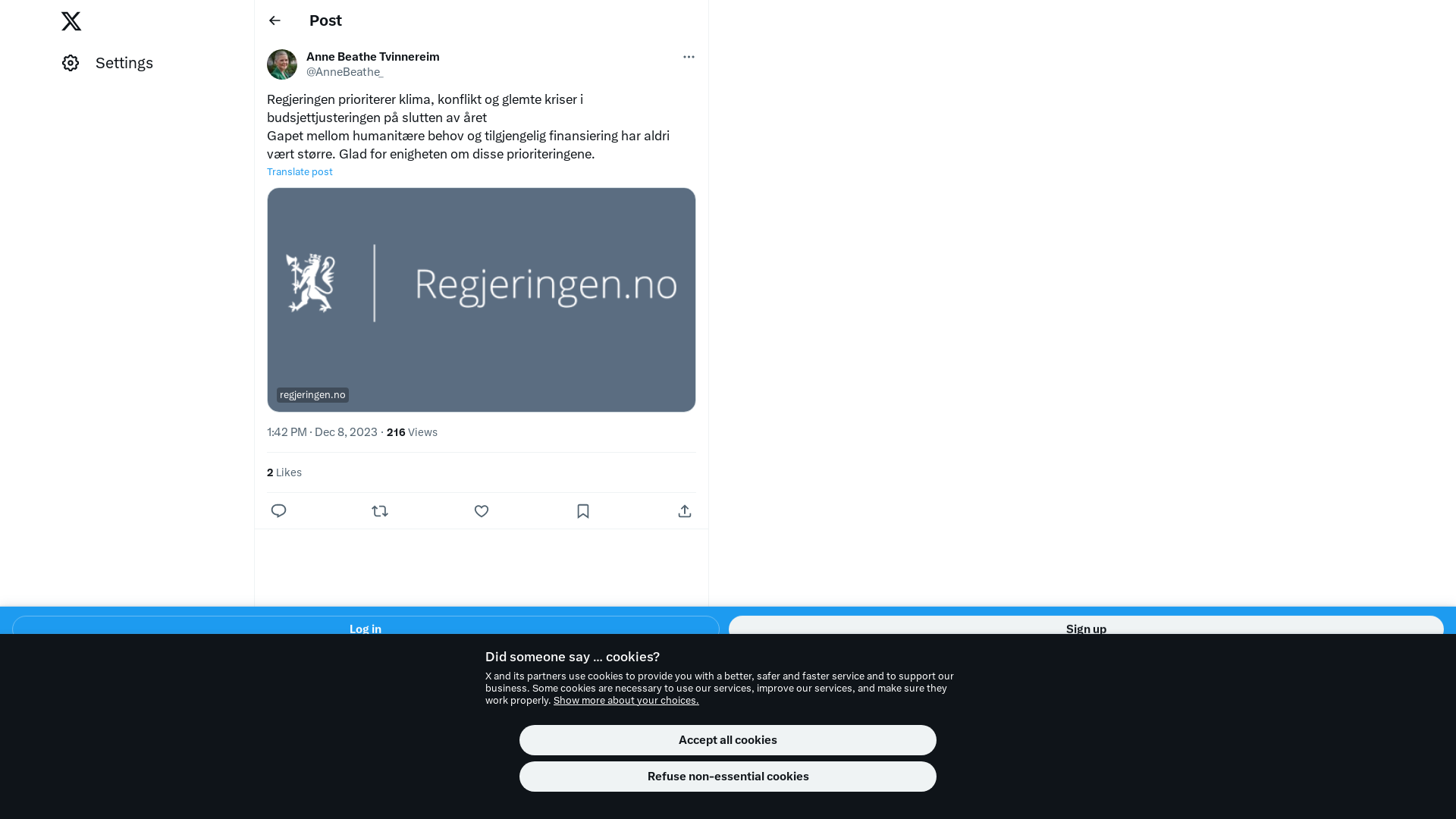 Regjeringen prioriterer klima, konflikt og glemte kriser i budsjettjusteringen på slutten av året \nGapet mellom humanitære behov og tilgjengelig finansiering har aldri vært større. Glad for enigheten om disse prioriteringene.\nhttps://t.co/2NGdvPV2Bd