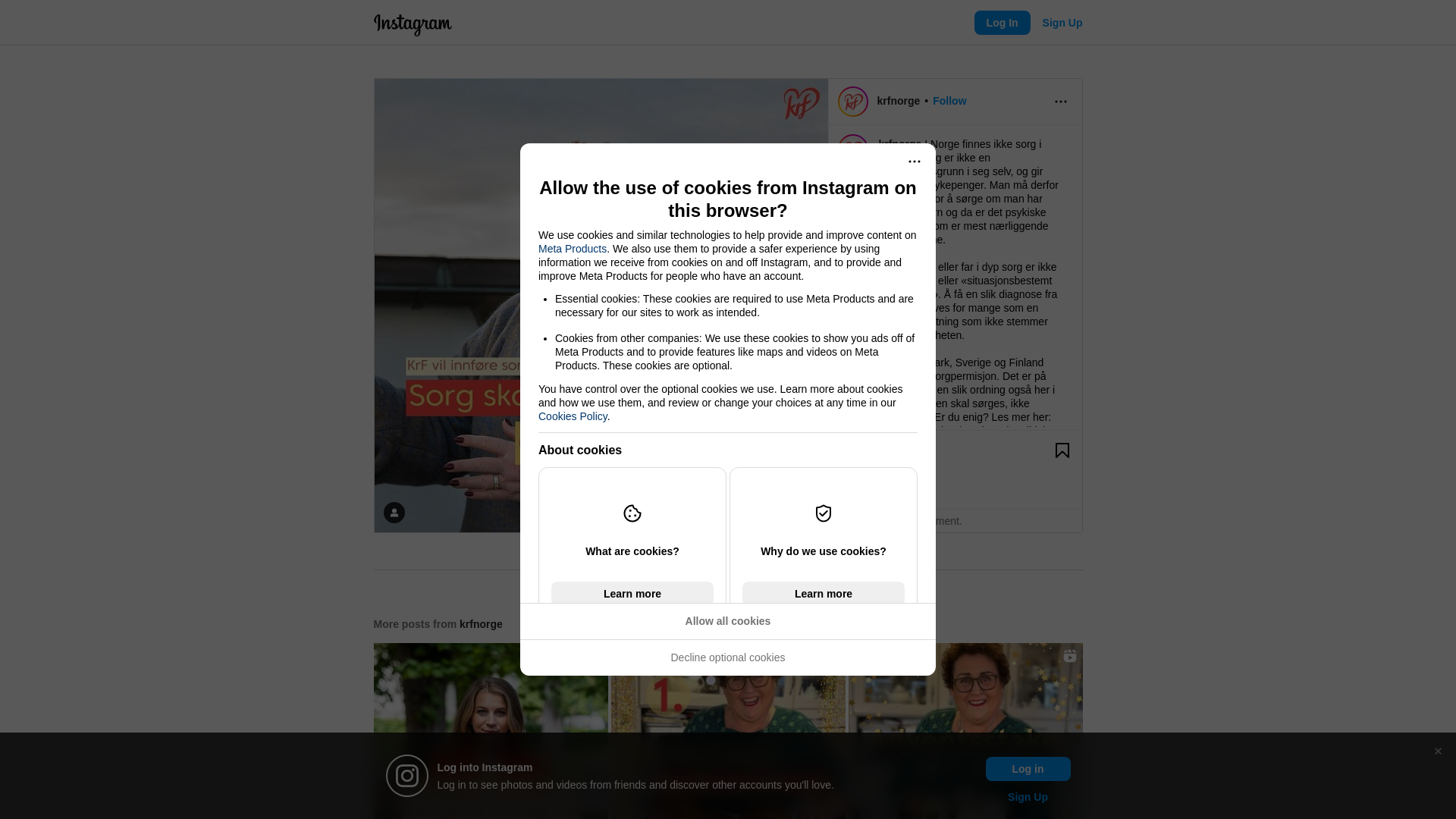 I Norge finnes ikke sorg i praksis💔 Sorg er ikke en sykmeldingsgrunn i seg selv, og gir ikke rett til sykepenger. Man må derfor sykmeldes for å sørge om man har mistet et barn og da er det psykiske diagnoser som er mest nærliggende for fastlegene.\n\nMen en mor eller far i dyp sorg er ikke «deprimert» eller «situasjonsbestemt psykisk syk». Å få en slik diagnose fra legen oppleves for mange som en ekstra belastning som ikke stemmer med virkeligheten.\n\nBåde Danmark, Sverige og Finland har innført sorgpermisjon. Det er på høy tid med en slik ordning også her i Norge. Sorgen skal sørges, ikke behandles💛 Er du enig? Les mer her: https://www.vl.no/meninger/verdidebatt/2023/11/29/olaug-bollestad-sorg-skal-ikke-behandles-den-skal-sorges/
