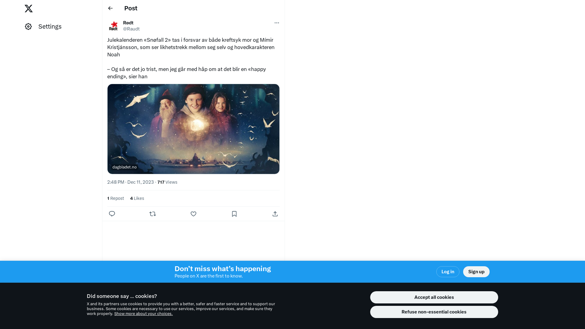 Julekalenderen «Snøfall 2» tas i forsvar av både kreftsyk mor og Mímir Kristjánsson, som ser likhetstrekk mellom seg selv og hovedkarakteren Noah\n\n– Og så er det jo trist, men jeg går med håp om at det blir en «happy ending», sier han\n\nhttps://t.co/iAsrFn4tW5