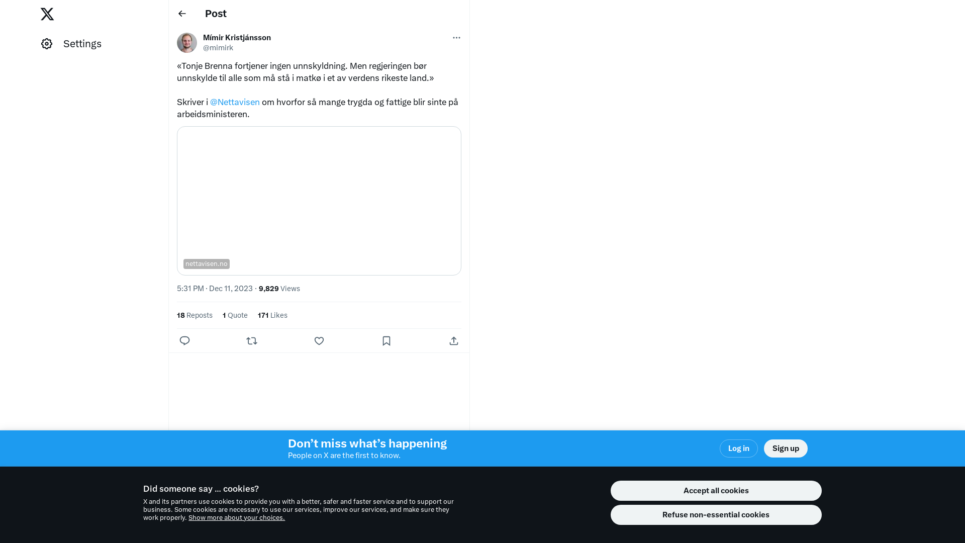 «Tonje Brenna fortjener ingen unnskyldning. Men regjeringen bør unnskylde til alle som må stå i matkø i et av verdens rikeste land.»\n\nSkriver i @Nettavisen om hvorfor så mange trygda og fattige blir sinte på arbeidsministeren. \n\nhttps://t.co/CGvuFHV354