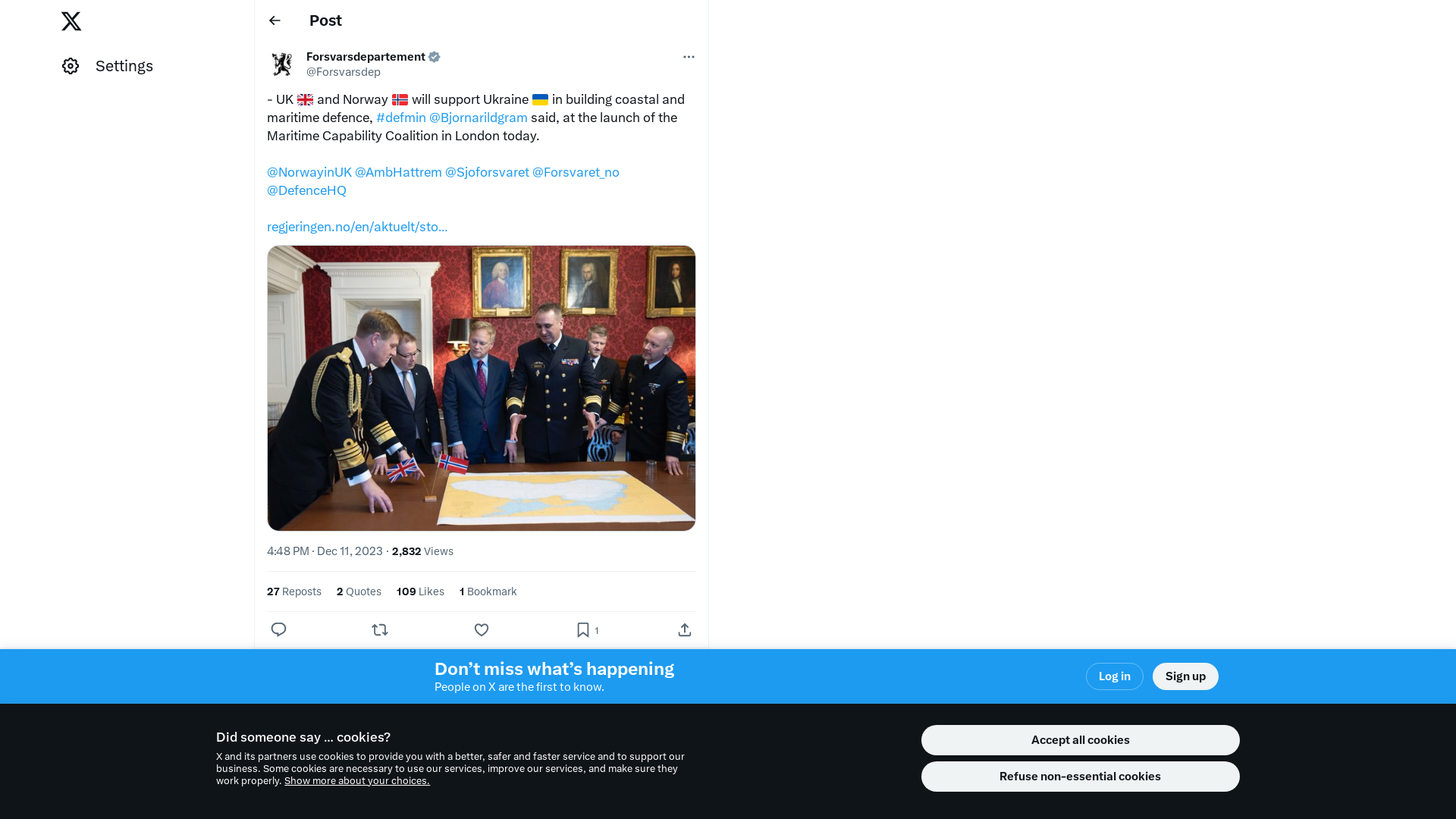 - UK 🇬🇧 and Norway 🇳🇴 will support Ukraine 🇺🇦 in building coastal and maritime defence, #defmin @Bjornarildgram said, at the launch of the Maritime Capability Coalition in London today. \n\n@NorwayinUK @AmbHattrem @Sjoforsvaret @Forsvaret_no @DefenceHQ \n\nhttps://t.co/cABTpIL93c https://t.co/0PjZmJ7Bck